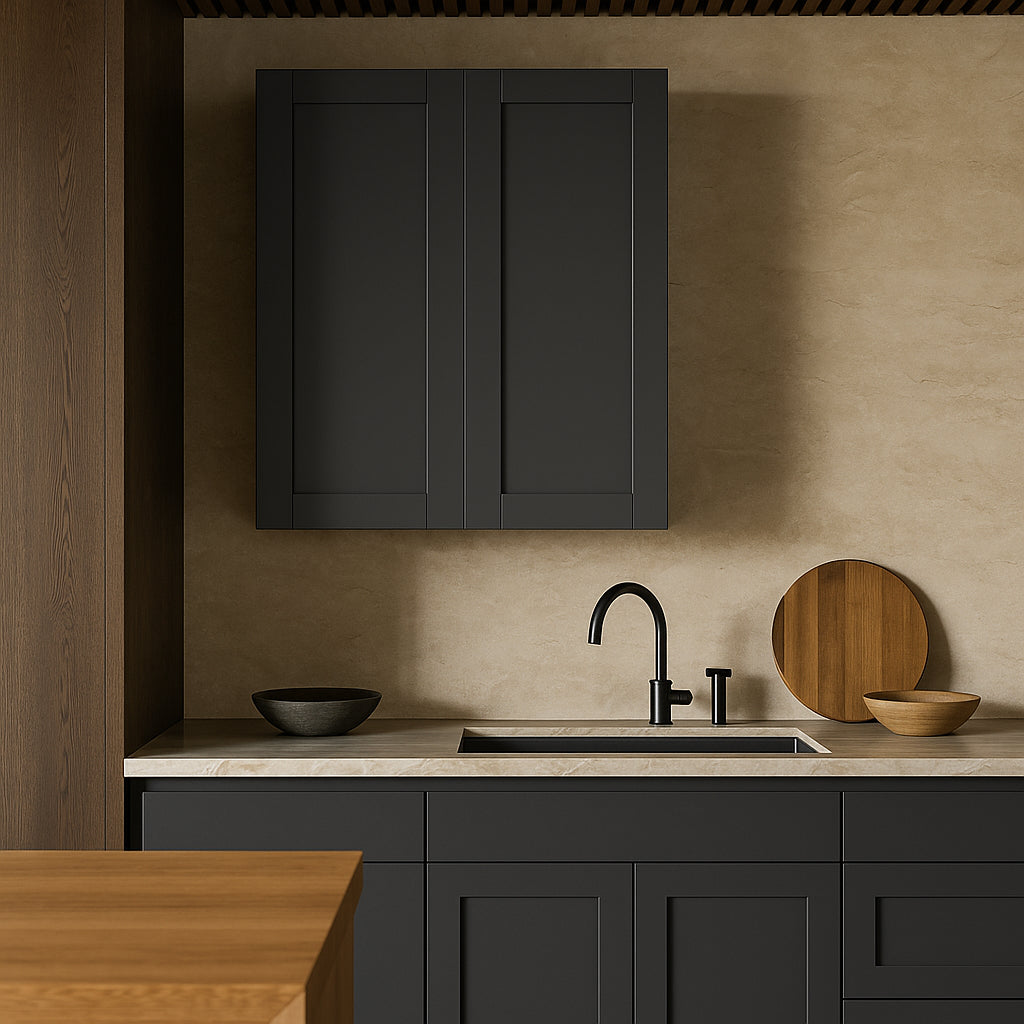 The MILL'S PRIDE Richmond Venetian Onyx Wall Kitchen Cabinet combines durable plywood construction with a sleek thermofoil finish, offering a modern and functional storage solution for your kitchen. Its shaker-style doors and adjustable shelves provide versatility and style.