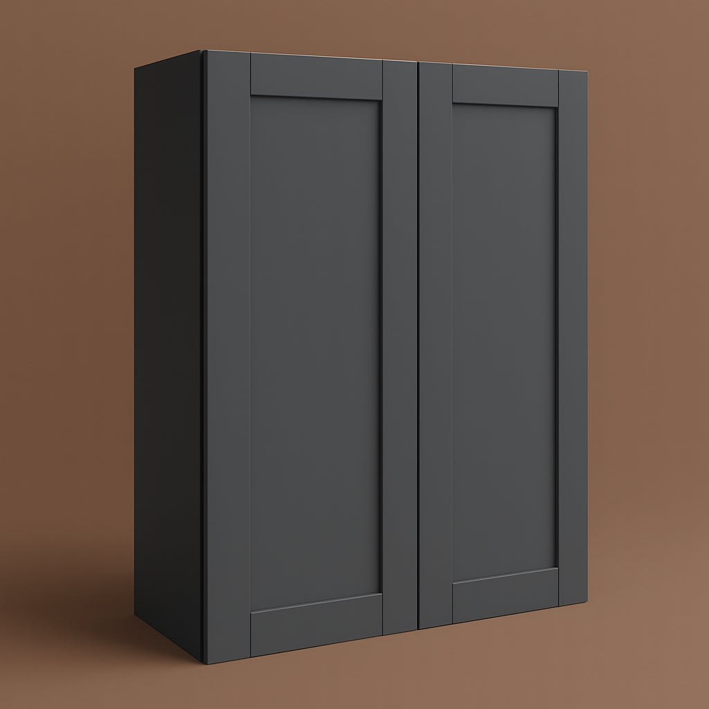 The Richmond Venetian Onyx Wall Kitchen Cabinet is a masterpiece of modern design and functionality. Its deep gray thermofoil finish adds a sophisticated touch, while the shaker-style doors bring a timeless appeal. Pair it with light countertops for a striking contrast or integrate it into a monochromatic scheme for a seamless look. This cabinet is not just storage; it's a statement of refined taste and practical luxury.