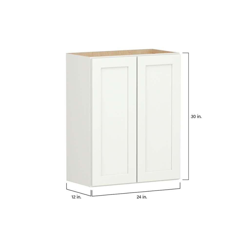 Shaker Full Overlay 24 in. W x 12 in. D x 30 in. H Plywood Assembled Wall Kitchen Cabinet in Linen White