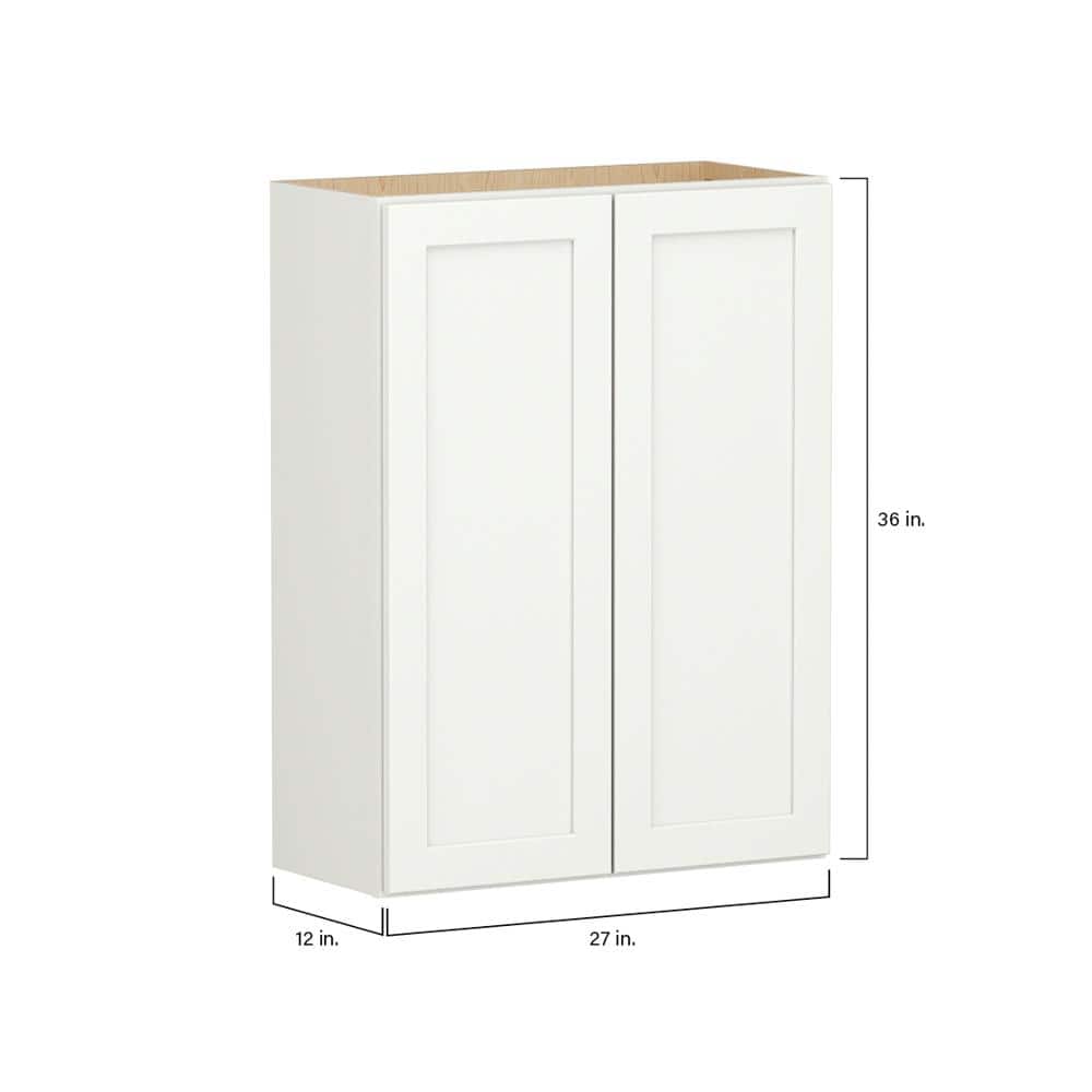 Shaker Full Overlay 27 in. W x 12 in. D x 36 in. H Plywood Assembled Wall Kitchen Cabinet in Linen White