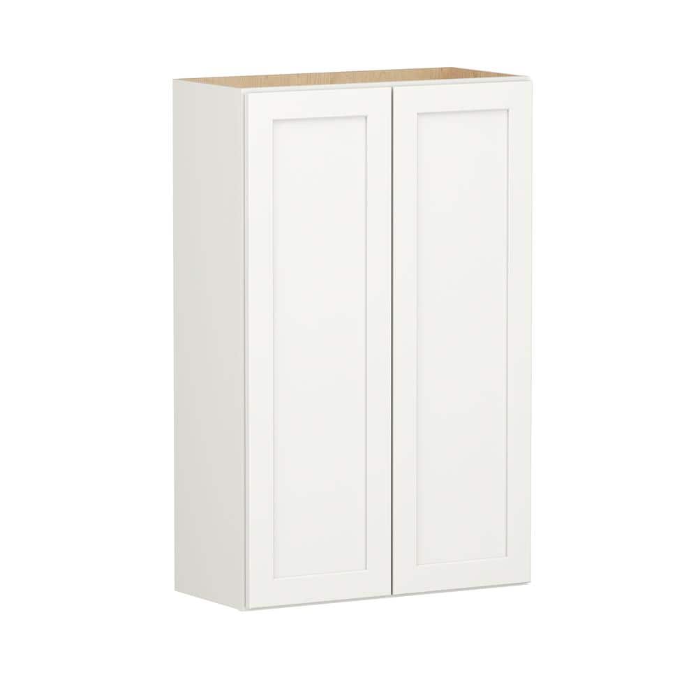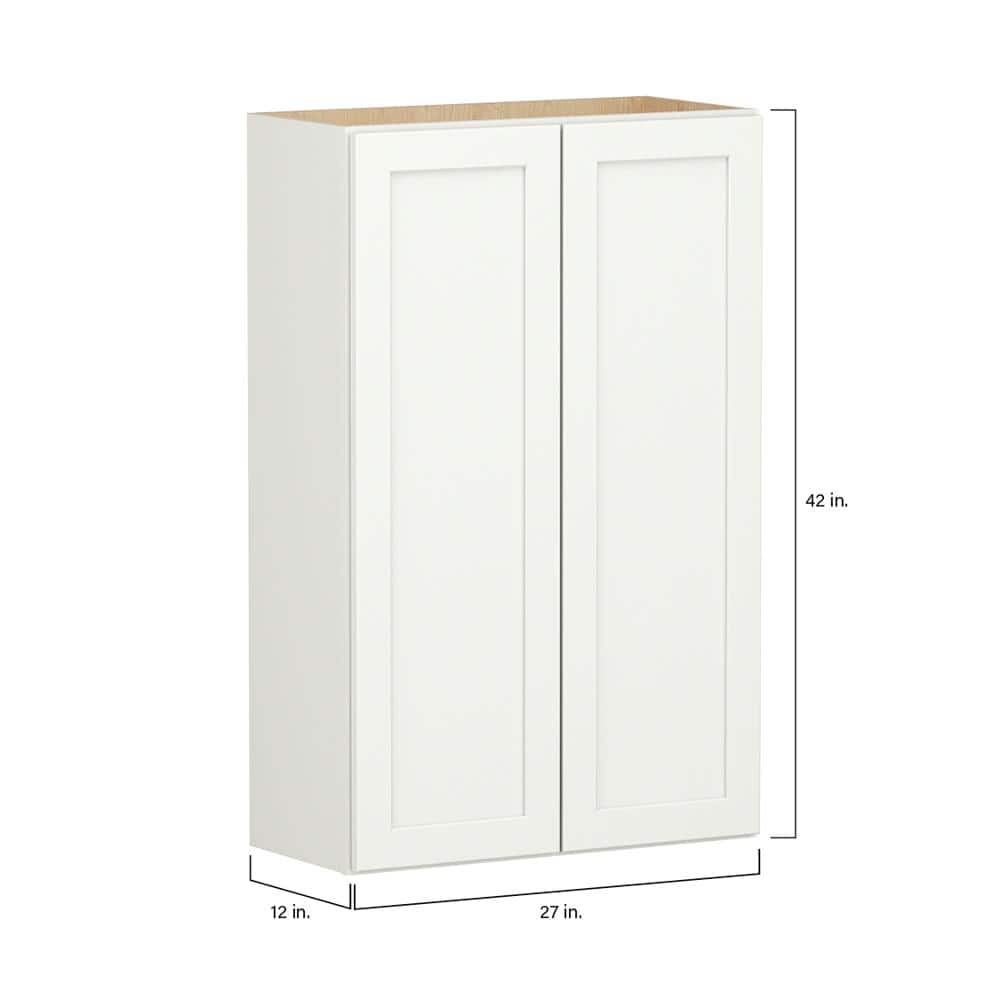 SIMPLY WOODMARK PRO Shaker Full Overlay 27 in. W x 12 in. D x 42 in. H Plywood Assembled Wall Kitchen Cabinet in Linen White