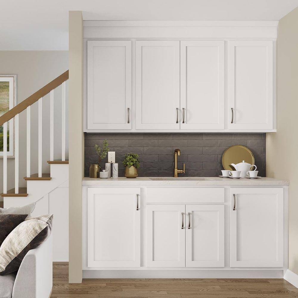 Elevate your kitchen's design with the SIMPLY WOODMARK PRO Linen White Shaker Wall Cabinet. Built from premium plywood and MDF, it boasts both durability and a modern style. This cabinet is fully assembled for quick installation and equipped with CushionClose hinges for quiet operation.