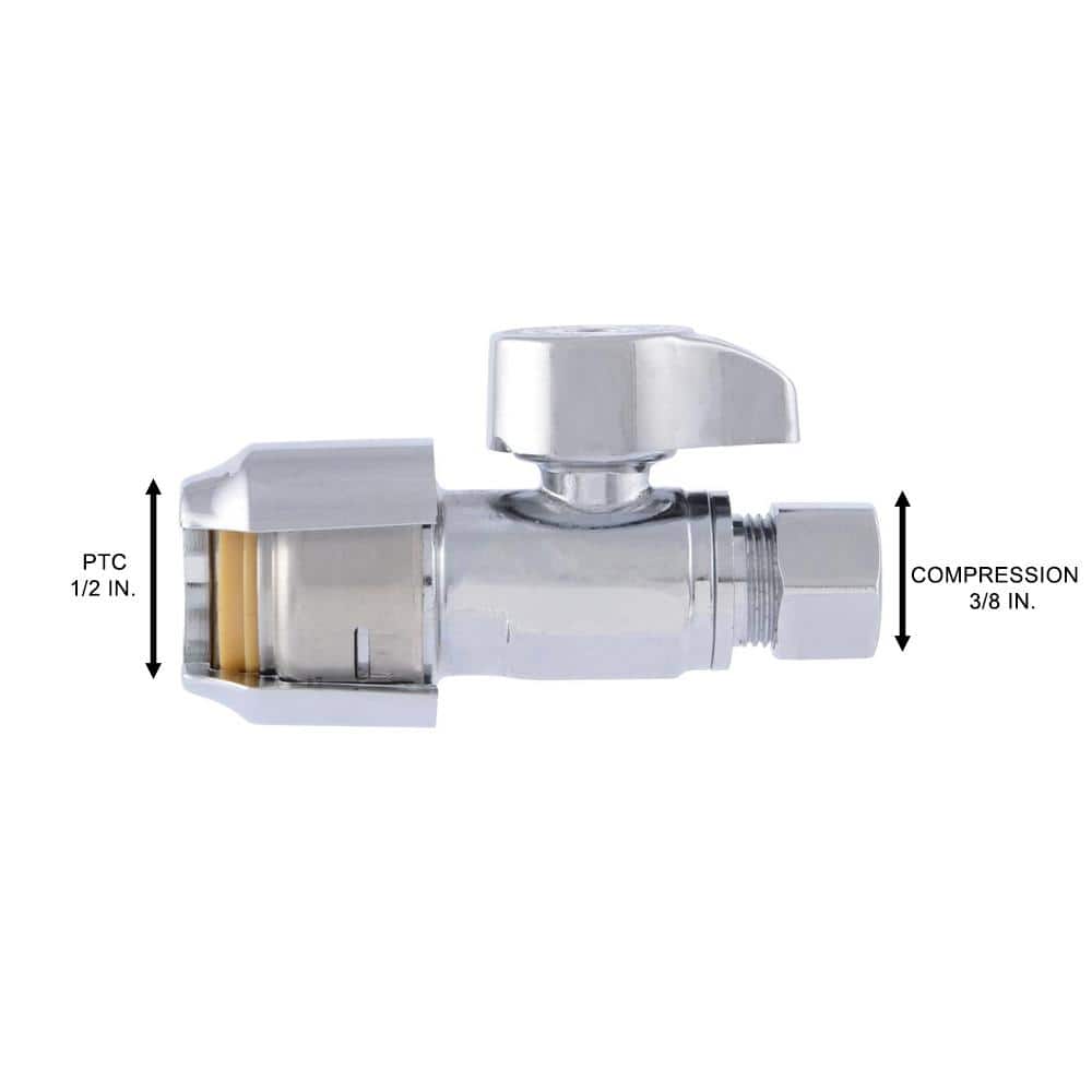 • Versatile Compatibility: Works with PEX, copper, CPVC, PE-RT; 1/2 in. PTC inlet x 3/8 in. O.D. compression outlet