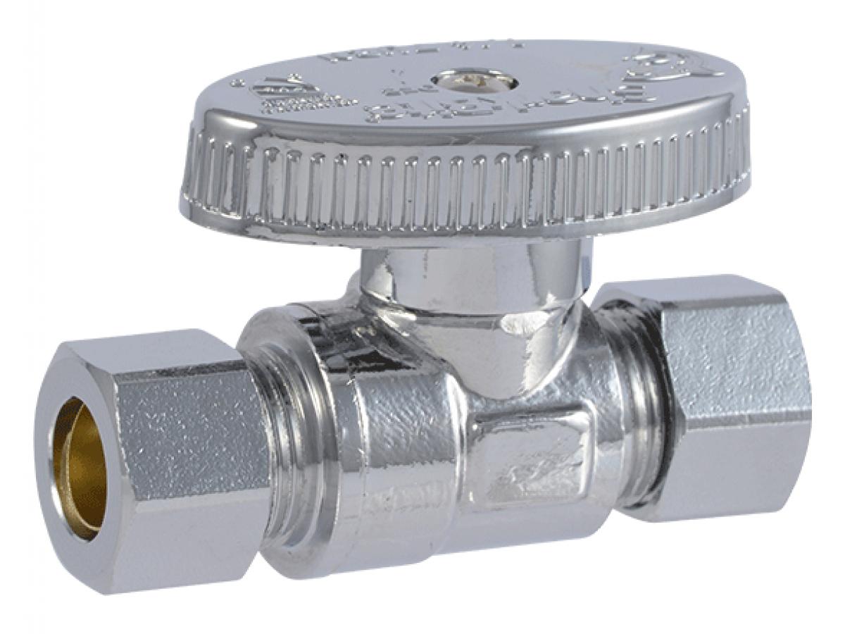 Durable brass, quarter-turn straight stop for controlling water flow to fixtures without shutting off the whole home. Features 3/8-in OD compression connections on both ends with a sleek chrome finish for clean, reliable installs.