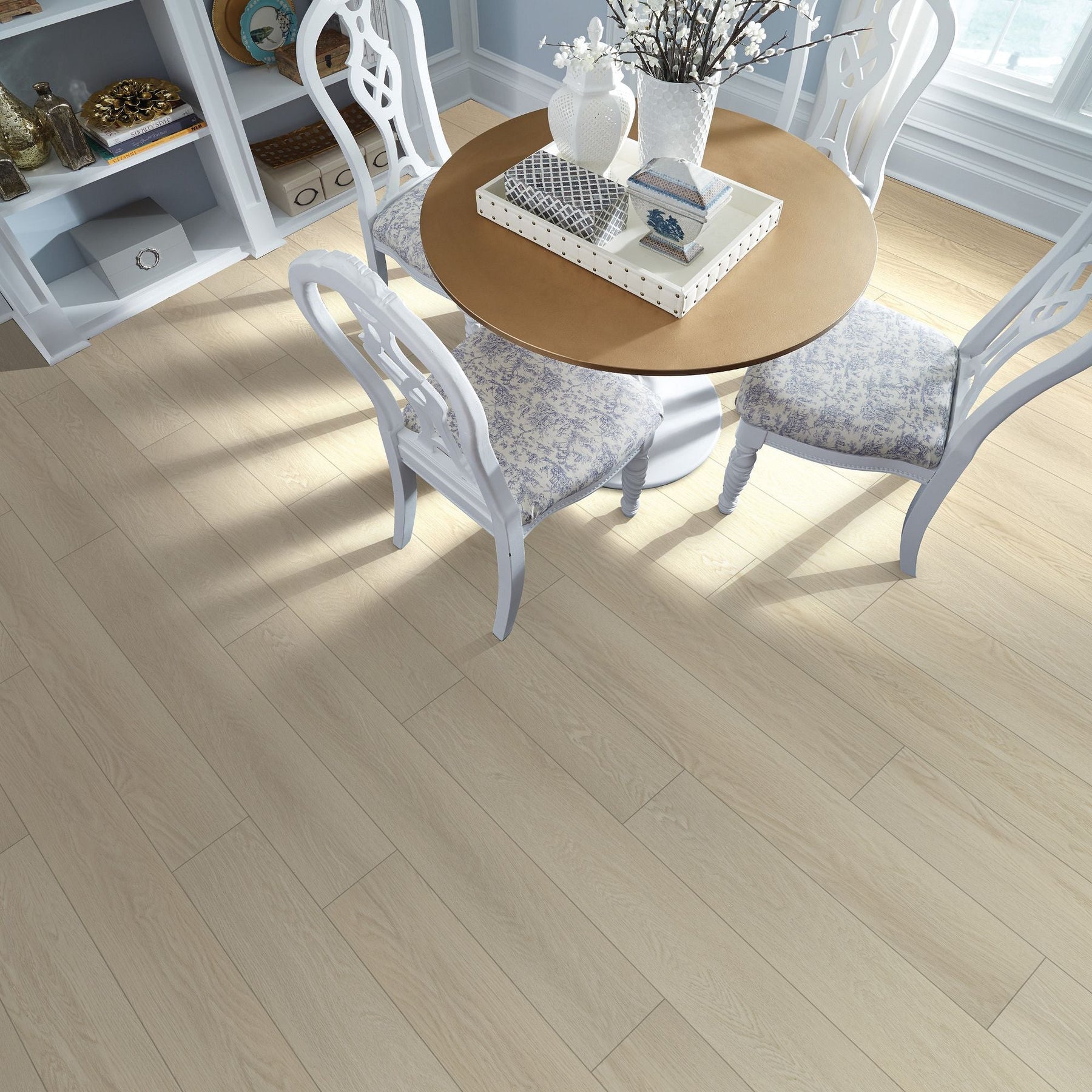 Experience the awe of nature's beauty with the Brillance Plus Grain Oak vinyl plank flooring as it graces your living space with the authentic allure of natural wood. Each 7-inch wide plank beautifully captures the essence of classic oak, presenting a chic, trend-forward finish in a light, contemporary shade. Imagine this exquisite flooring as the foundation of a serene sanctuary, perhaps paired with lush textiles and soft hues, creating an environment of understated luxury. These elegant planks are not just functional; they are essential in crafting a life filled with stylistic sophistication and comforting warmth.