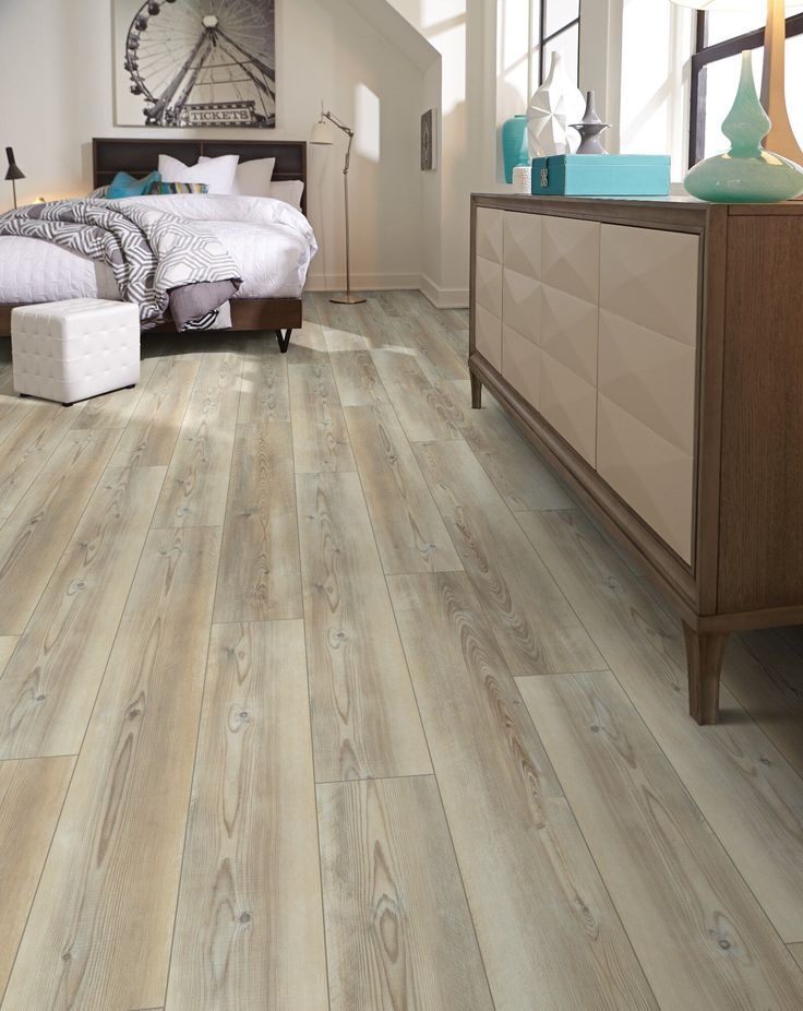 Highly realistic wood visuals with beveled edges and embossed texture 100% waterproof - won't swell, crack or peel when exposed to water Simple DIY click installation and easy to clean Rigid core provides increased strength and hides subfloor imperfections Features an attached acoustical pad 20 mil wear layer for residential and commercial use 7 in W x 48 in L x 5.5mm thick planks cover 18.91 sq ft per box Lifetime residential warranty and 10 year light commercial warranty for peace of mind