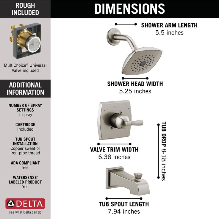 A striking addition to the bath, the Flynn™ Bath Collection combines squared edges and sloping angles with a robust base and powerful stance Monitor® pressure balance valve keeps water temperature within a safe 3° F (1.6° C), helping to protect you from sudden changes in hot or cold water pressure Complete unit includes trim and MultiChoice® Universal Valve with rough-in Full body spray provides a steady, full-coverage spray perfect for every shower need, from rinsing shampoo from hair to relaxing tired muscles ADA Compliant