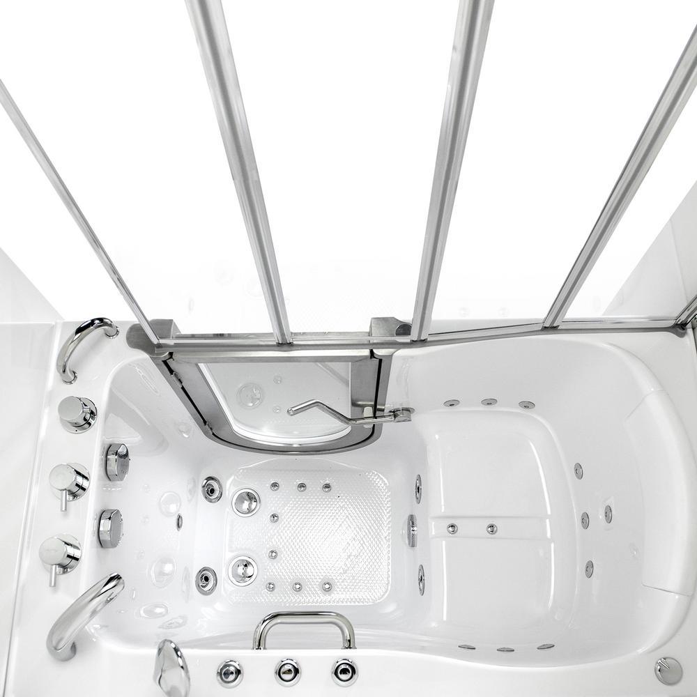 Ella Elite 52 in. Walk-In Whirlpool & Air Bath Tub, White, Right-Hand Door, Thermostatic Faucet, Dual Drain, Shower Screen