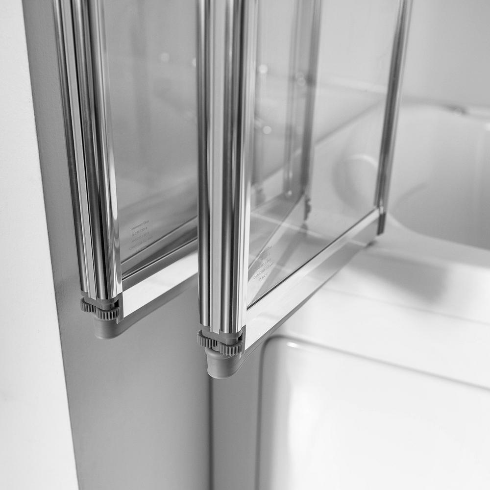 • Versatile Bathing: Thermostatic fast-fill faucet and folding shower screen support seated soaking and showering.