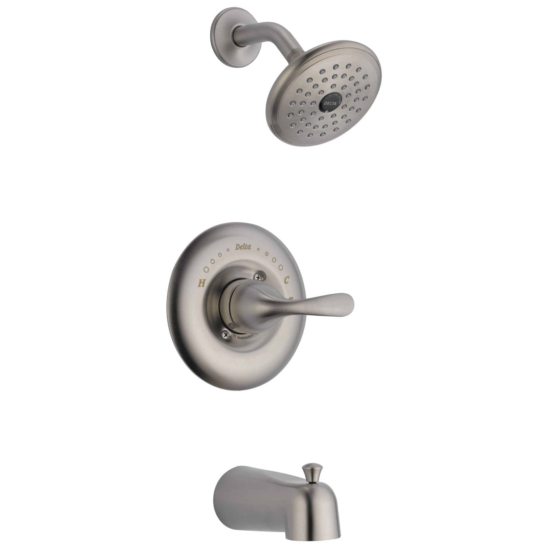 Delta’s Classic collection tub and shower faucet delivers dependable performance with a stainless, brushed finish that coordinates with most baths. The included Monitor pressure-balanced valve maintains consistent water temperature, and the WaterSense-labeled single-function showerhead provides efficient 1.75 GPM flow.