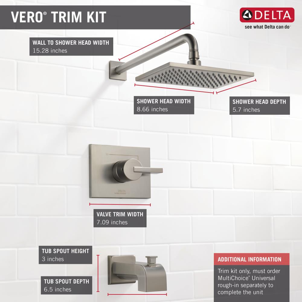 Upgrade your bath with Delta Vero’s modern lines and temperature-safe performance—order the trim kit today and pair it with a MultiChoice valve to complete the set.
