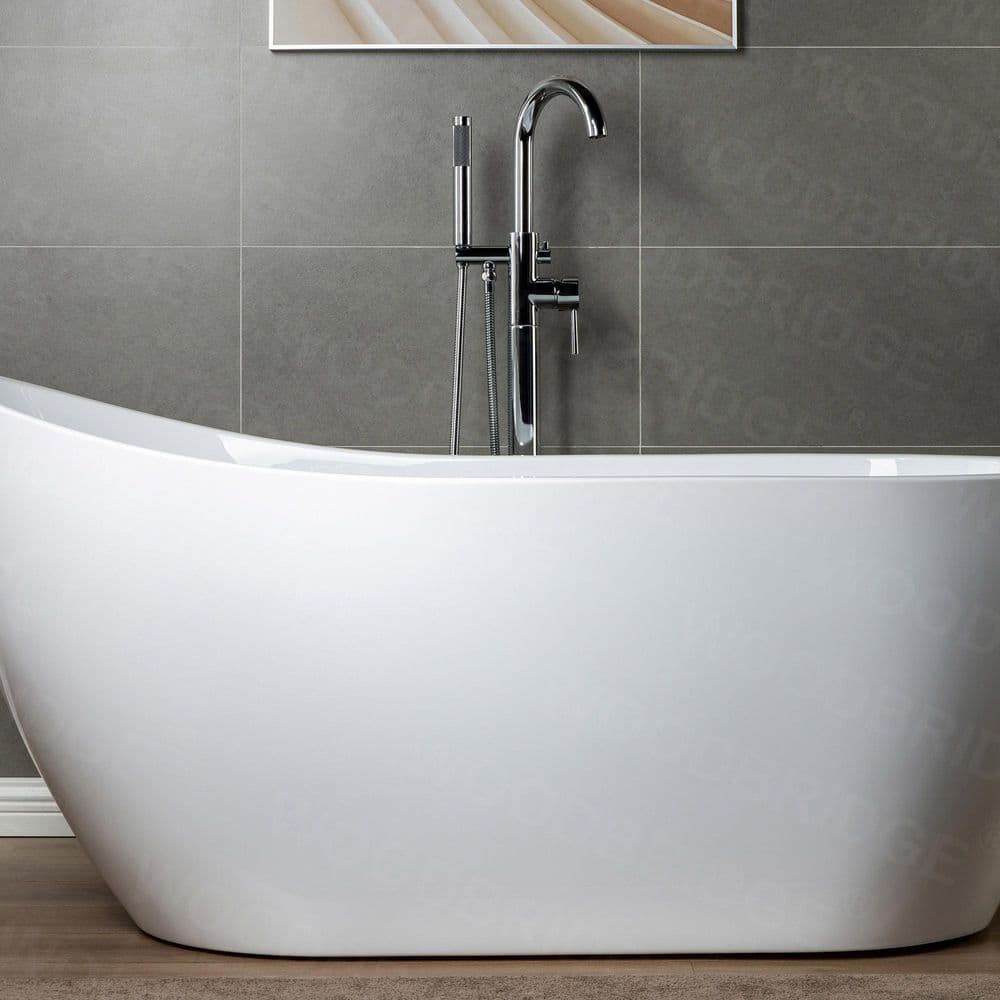 Upgrade your bath with this WOODBRIDGE Mammoth freestanding tub filler. Solid-brass construction and a corrosion-resistant chrome finish deliver lasting performance, while the ceramic disc cartridge ensures drip-free operation. A single lever controls temperature and flow, and the included hand shower and stainless hose add versatile rinsing convenience.