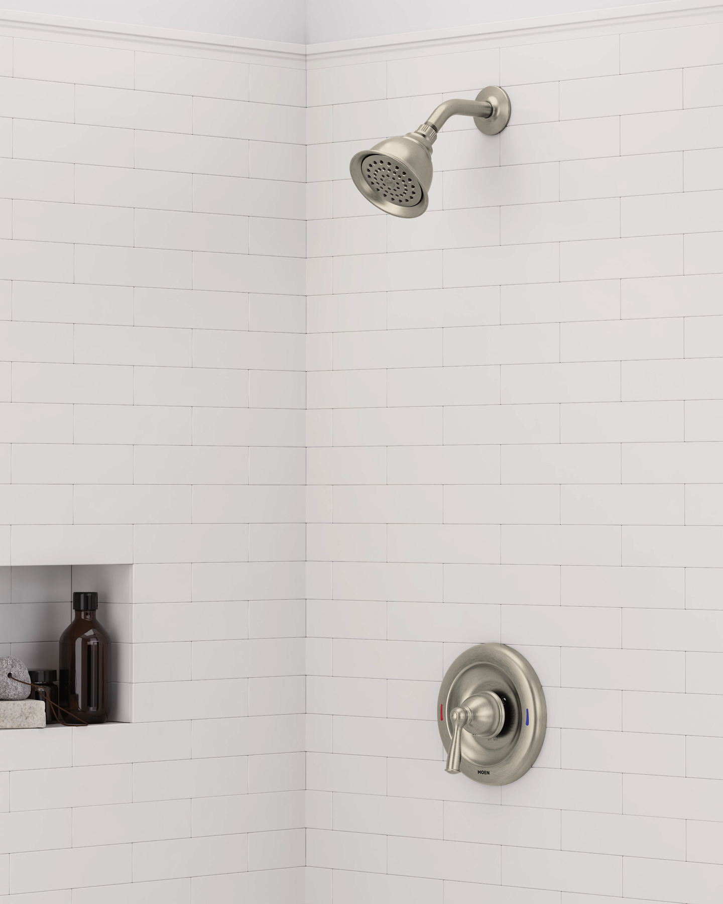 Upgrade your shower with reliable temperature control and a spotless nickel finish—choose the Moen Banbury today.