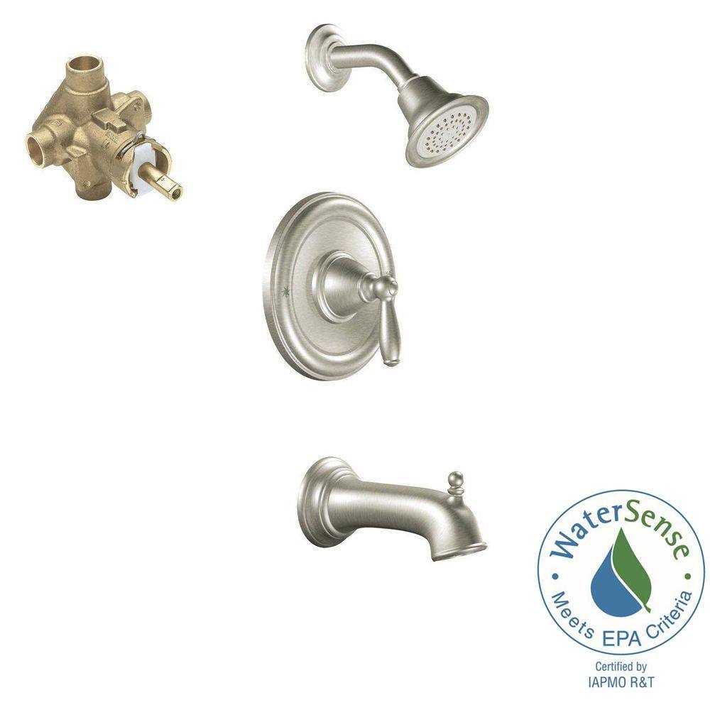 Moen Brantford Single-Handle 1-Spray Posi-Temp Tub and Shower Faucet Trim Kit in Brushed Nickel, Valve Included