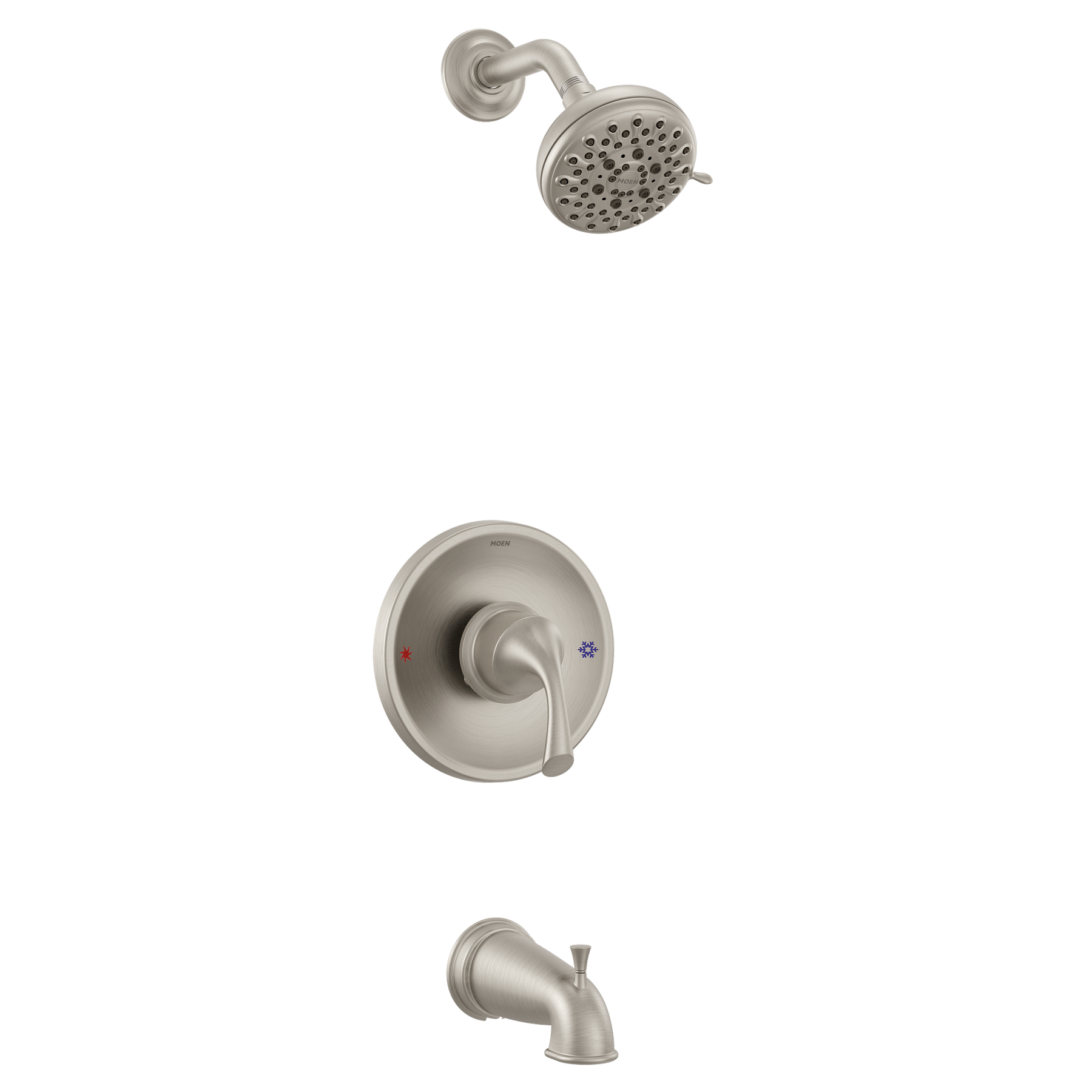 Bring refined curves and everyday reliability to your bath with Moen’s Idora tub and shower set. The single lever controls a Posi-Temp pressure‑balancing valve for consistent water temperature, while the 5‑function wall‑mount showerhead delivers versatile spray options.