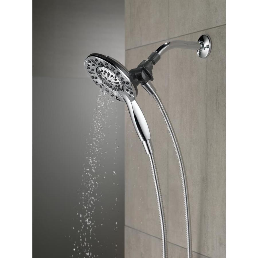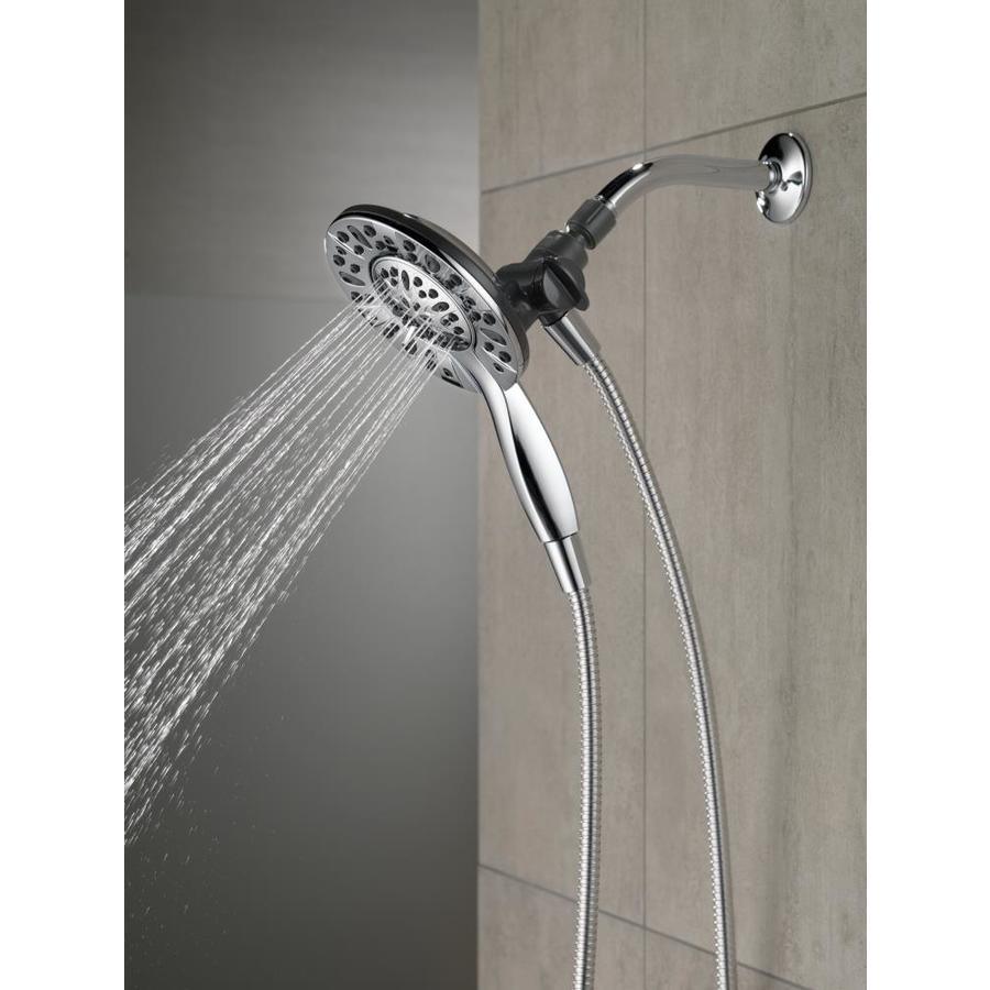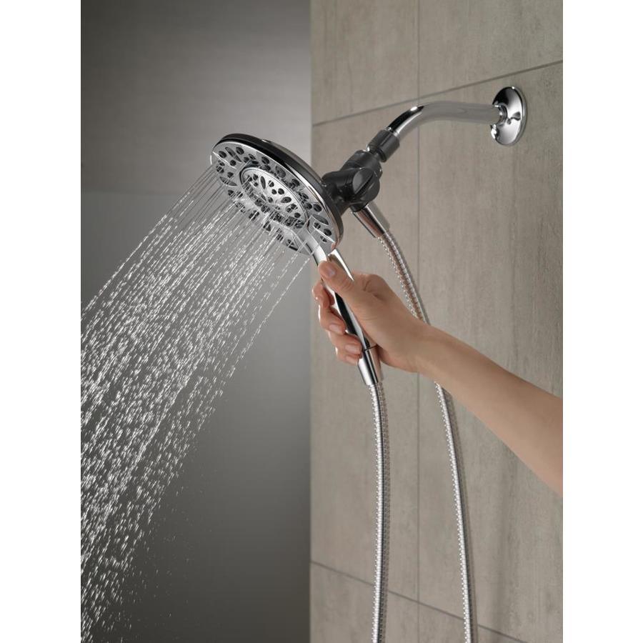 The In2ition Two-in-One shower gets water where you need it most using the integrated shower head and hand shower separately or together Perfect for bathing loved ones and pets as well as keeping the inside of your shower and tub clean Soft, rubber Touch-Clean spray holes allow you to easily wipe away calcium and lime build-up from the spray face of your shower head and hand shower with the touch of a finger Installs in minutes Spray settings include: Full Body spray, Full Spray with Massage, Massaging spray Pause feature reduces water to a trickle, giving you space for shaving, lathering and other shower tasks while maintaining your temperature settings Includes 60-in hose