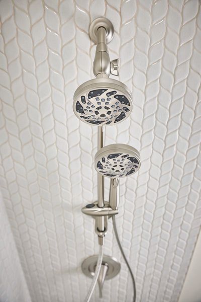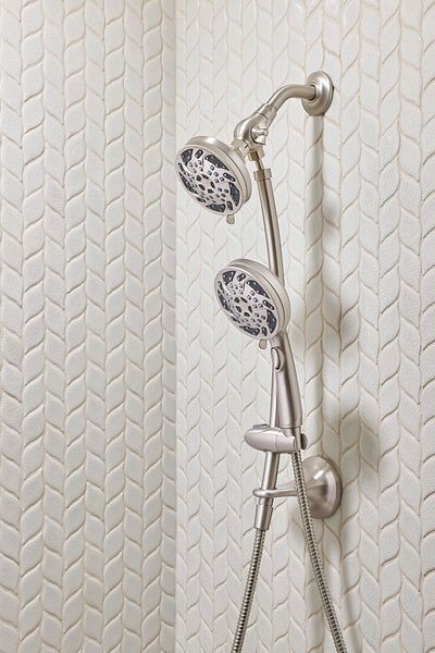 Spot Resist Brushed Nickel finish resists fingerprints and water spots 4.5 inch diameter spray face on handshower and fixed showerhead 1.75 GPM and intuitive pause function for water conservation Maintain consistent water spray with rub-clean nozzles 60 in. kink-free metal hose for reach and flexibility 19 in. slide bar with push button height selection Able to use handheld shower and fixed showerhead separately or together Limited lifetime warranty