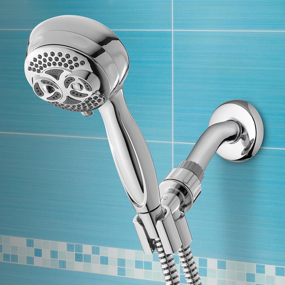 The Twin Turbo 6-Spray Handheld Showerhead in Chrome features six (6) sprays that deliver a high-power experience unlike any other shower head. Two side-by-side turbo massage jets simultaneously deliver incredible massaging power with shoulder-to-shoulder coverage for twice the massaging action. This revitalizing Twin Turbo hand held shower head gets every day off to a great start.