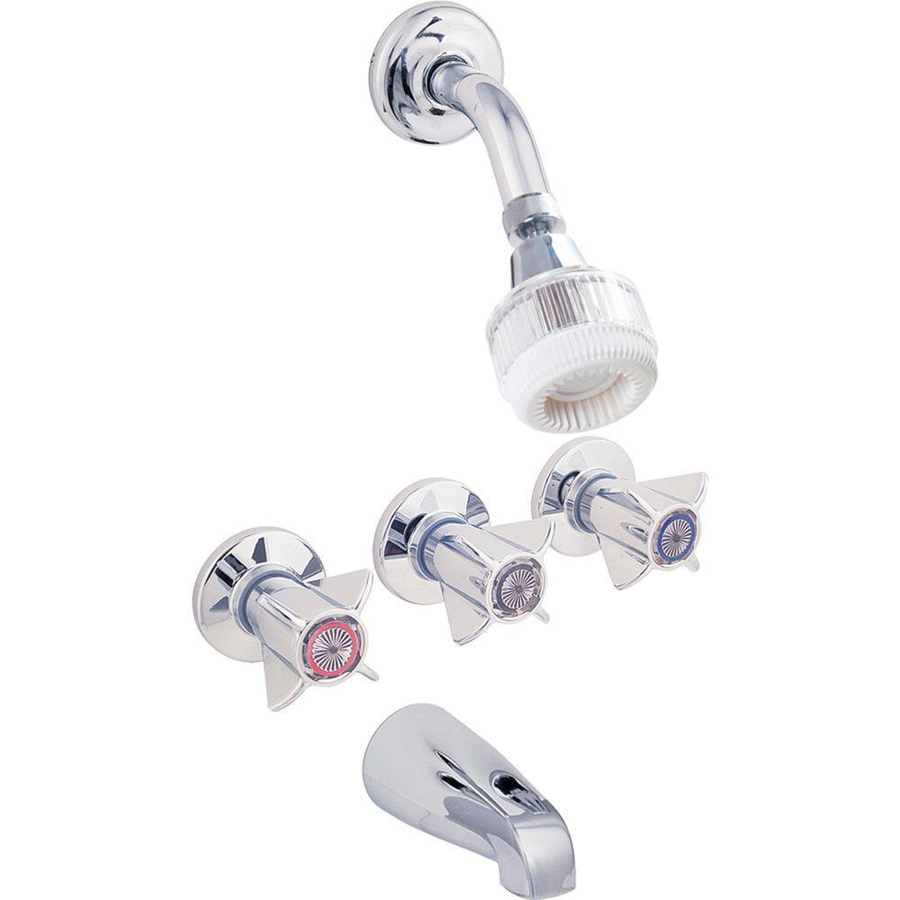 From EZ-FLO's Basic-N-Brass Collection, the Tub and Shower Set is practical and attractive and will complement a wide variety of bathroom decor. This shower set comes with 3 4-wing chrome brass handles, allowing you to precisely control water flow and temperature. This shower set is designed for every day basic use and offers an economic value.