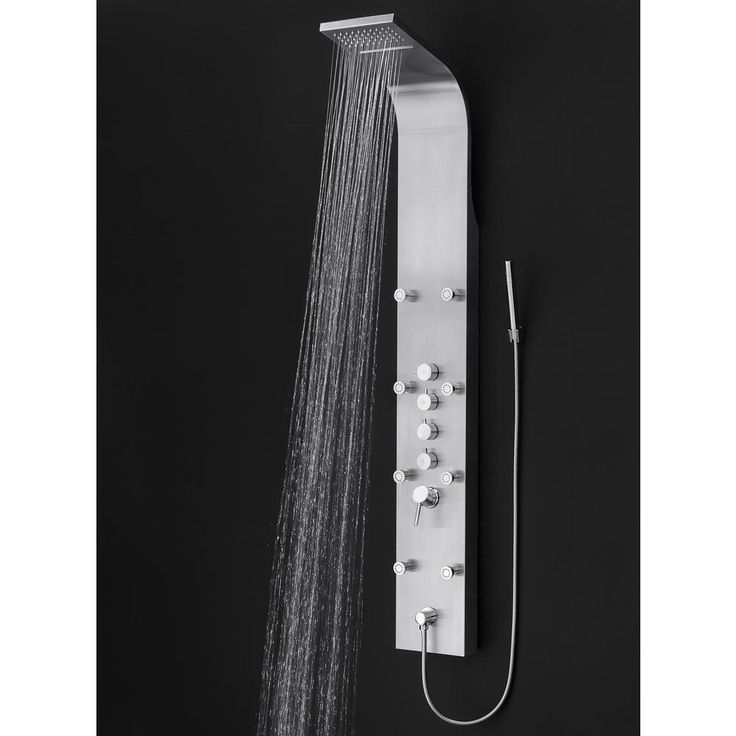 Utilitarian by design and ultra-durable, our large 65 in. stainless steel shower is fit for a king. 8-high-powered body spray jets provide a relaxing and soothing shower with the added convenience of being angle adjustable. A wide overhead shower does double duty as a rainfall and waterfall shower for the best of both worlds. A matching hand shower with extra-long hose ensure you get to all the hard to reach places with ease.