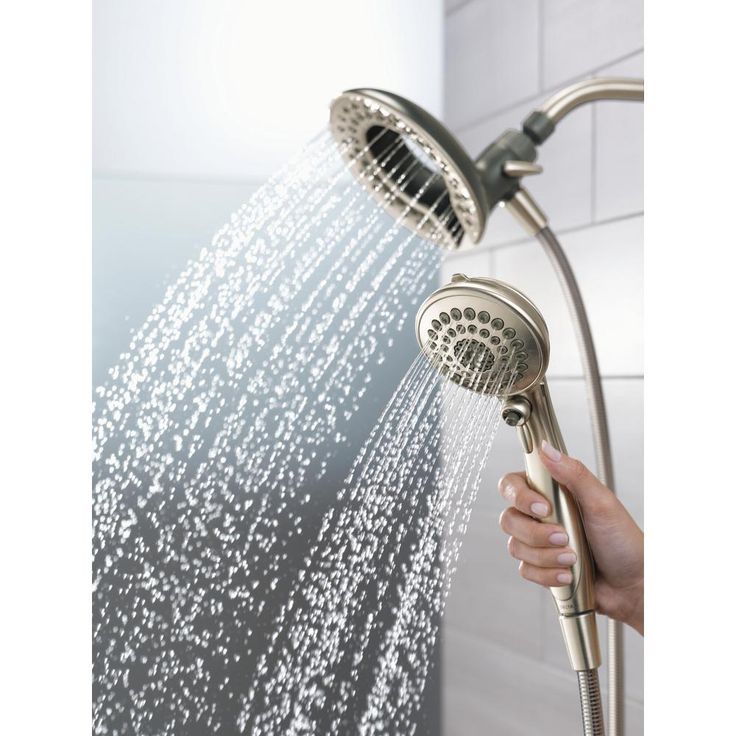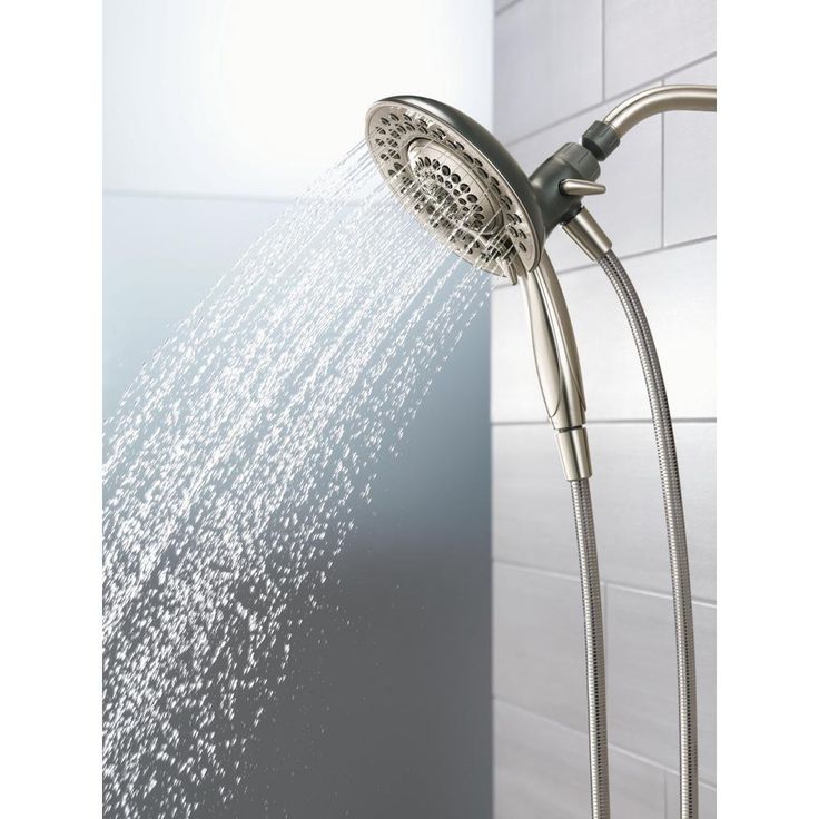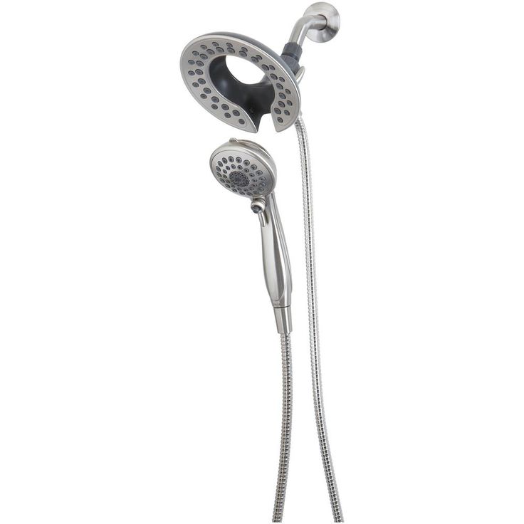 The In2ition 5-Function Hand Shower and Shower Head Combo Kit in Brushed Nickel is a simple and convenient way to update the look and functionality of your bath. The easy-to-use, 3-way diverter lets you choose to operate either the hand shower, shower head or both at 1 time, while the matching plated face and push-button pause control create a seamless look. You'll have great range of motion with the 6 ft. flexible hose, great for hard-to-reach spots or for bathing kids and pets. This extra-wide, full-spray Shower Head features 5 spray settings including massage, designed for a personalized shower every time.