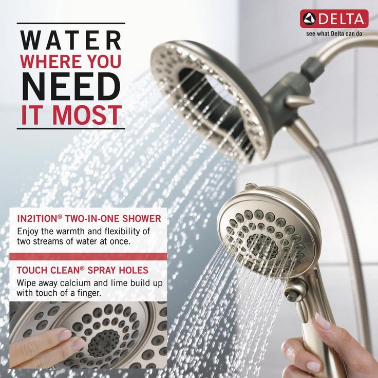 • Diverter lever sets in2ition 2-in-1 shower to 1 of 3 options: shower head and hand shower, shower head only, and hand shower only