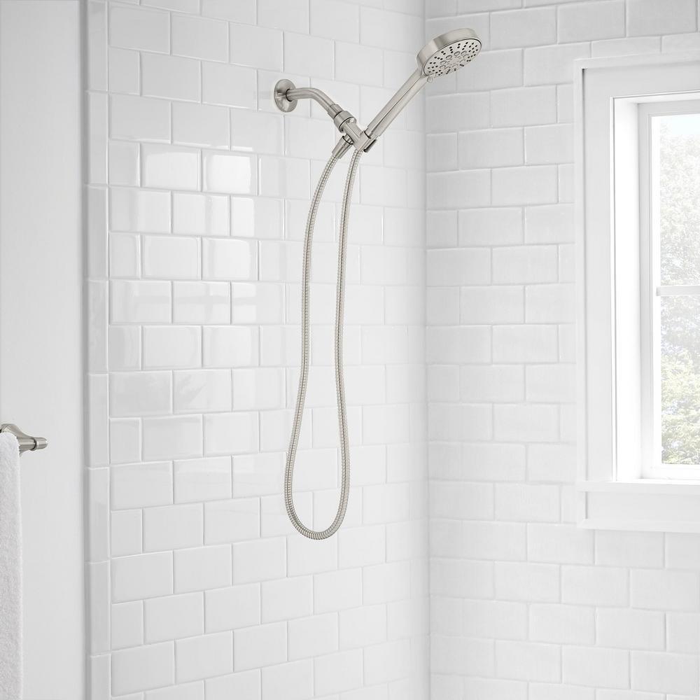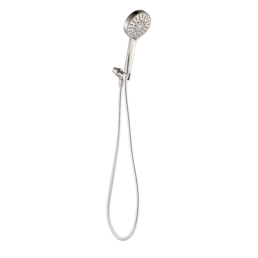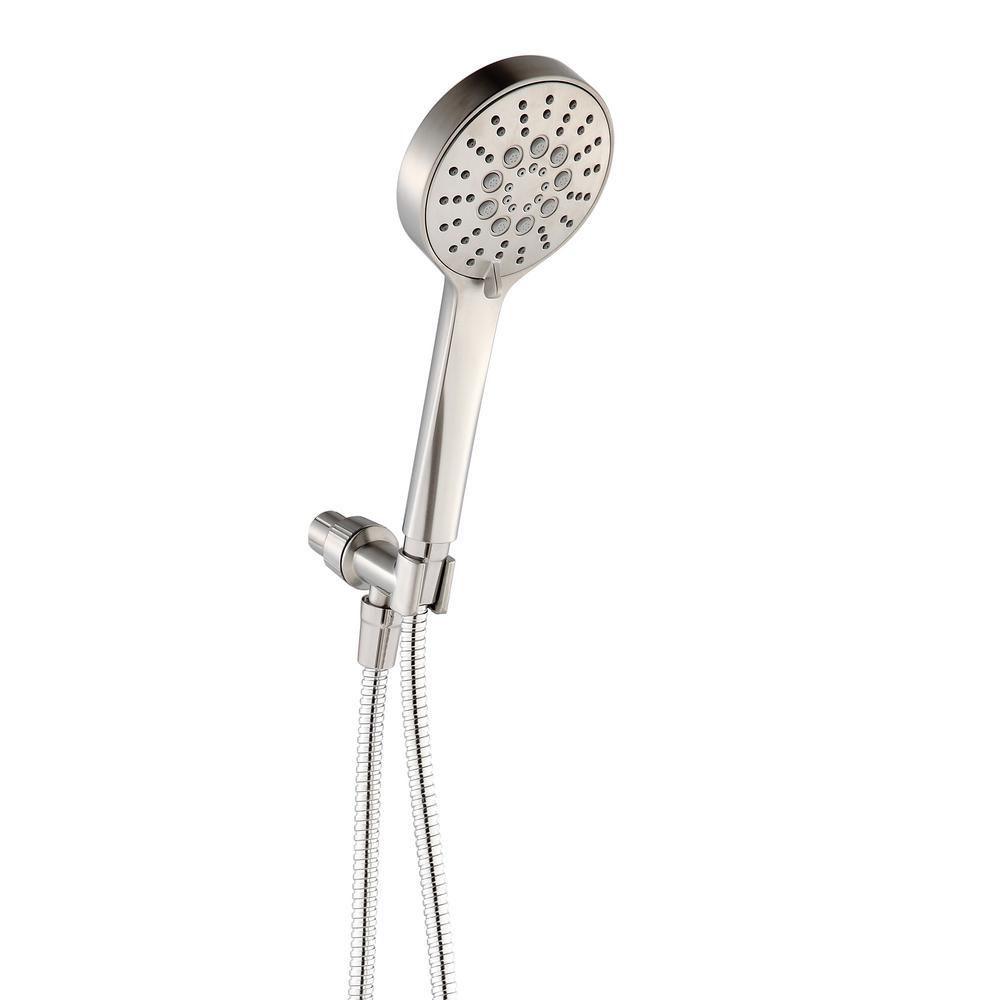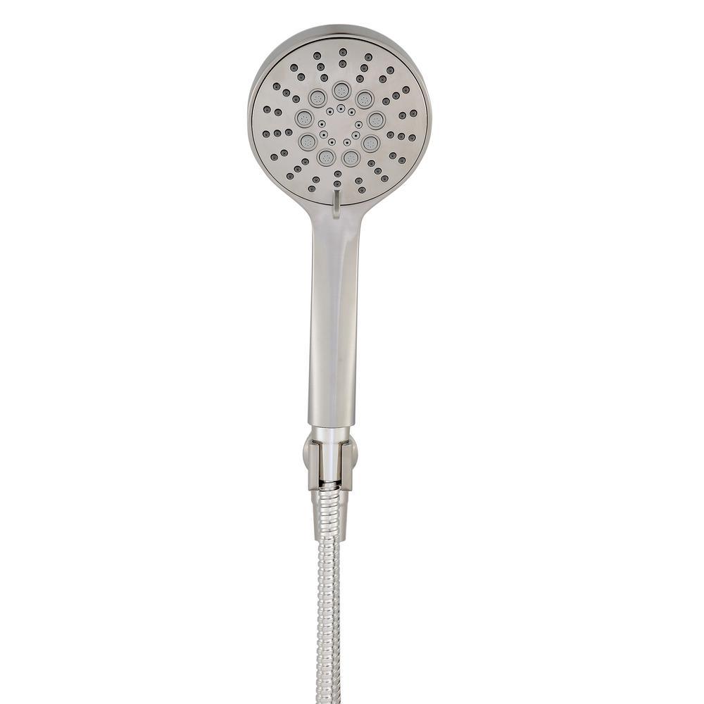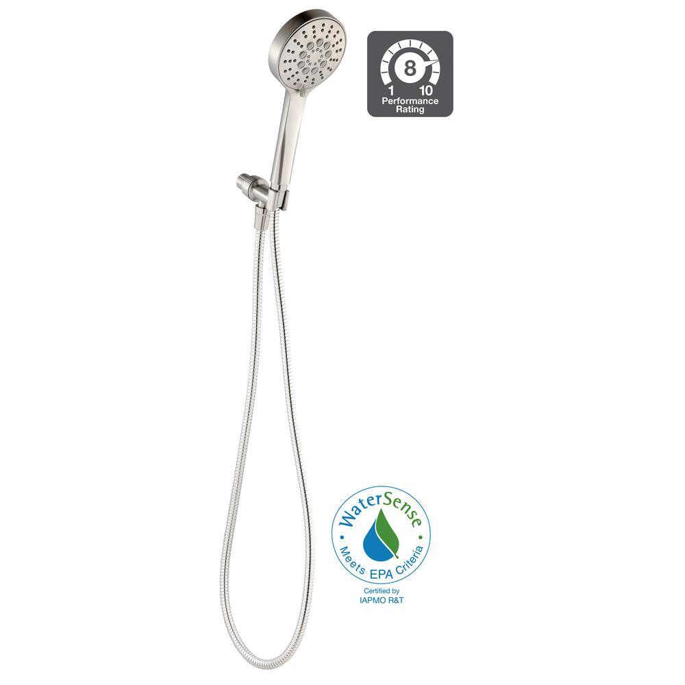 For convenience and style, replace your showerhead with the Glacier Bay Modern 6-Function Handshower Kit in Brushed Nickel. WaterSense certified with a 1.8 GPM flow rate to conserve water without sacrificing performance. The spray options include Full Spray, Power Rinse, Massage, Combo Power Rinse, Combo Massage and the Pause function. The rub-clean nozzles provide easy maintenance. The 60 in. Stainless Steel hose allows for comfortable movement.