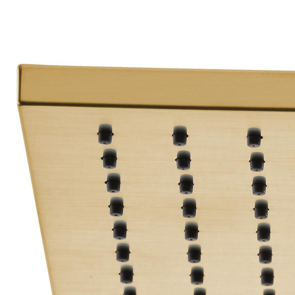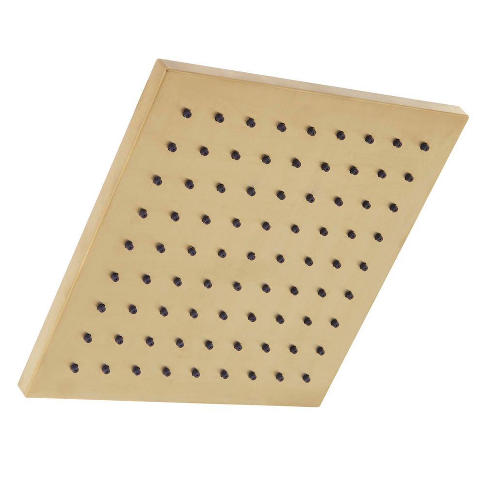 Modern 1-Spray Square Raincan Fixed Showerhead features a matte gold finish in a contemporary design. It includes a plated spray face that upgrades your shower experience, and is WaterSense certified at 1.8 GPM flow rate. The spray nozzles easily wipe clean to prevent mineral build-up.