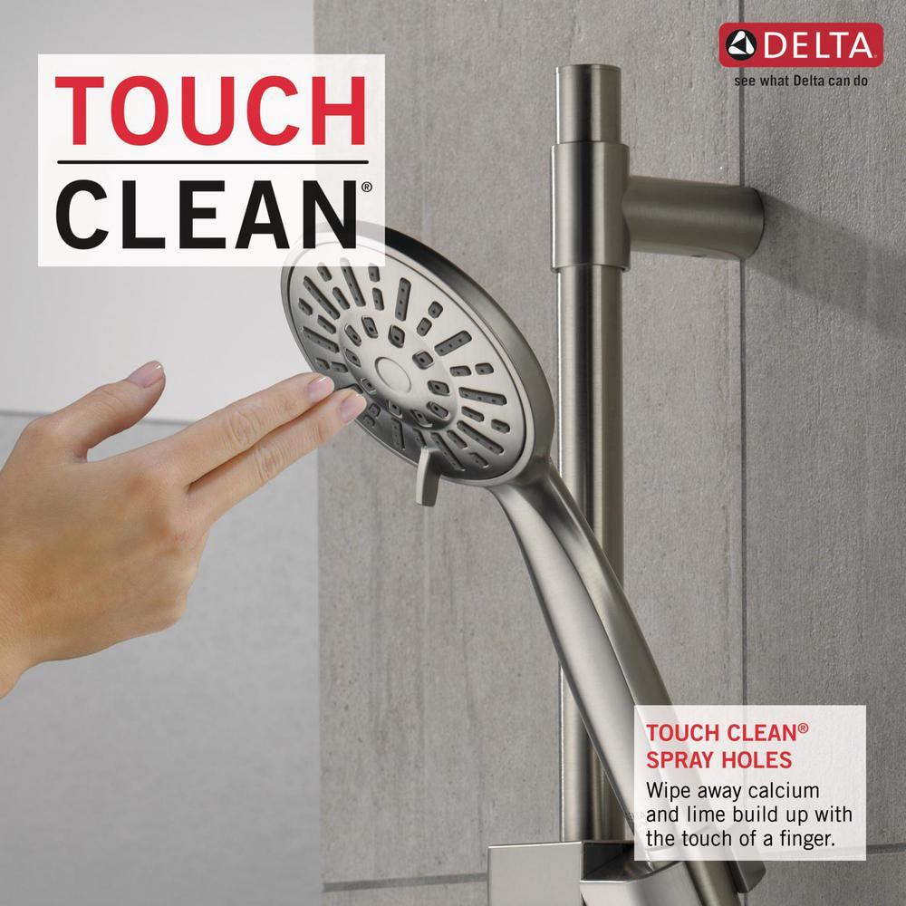 Experience a better shower with the control and flexibility of a Delta hand shower. Great for showering yourself or your loved ones and pets, as well as for keeping your shower and tub clean. While other products may gather unsightly mineral build-up over time, Delta soft rubber Touch-Clean spray holes allow any mineral residue to simply be wiped away for an instantly refreshed look with no need for soaking or the aid of chemical cleaners. The pause setting gives you ample space for shaving, lathering and other shower tasks, without worrying about overspray or water waste. This spray setting helps you conserve water, so you can worry less about depleting your supply of hot water - and you help the environment too. Delta WaterSense labeled faucets, showers and toilets use at least 20% less water than the industry standard saving you money without compromising performance.