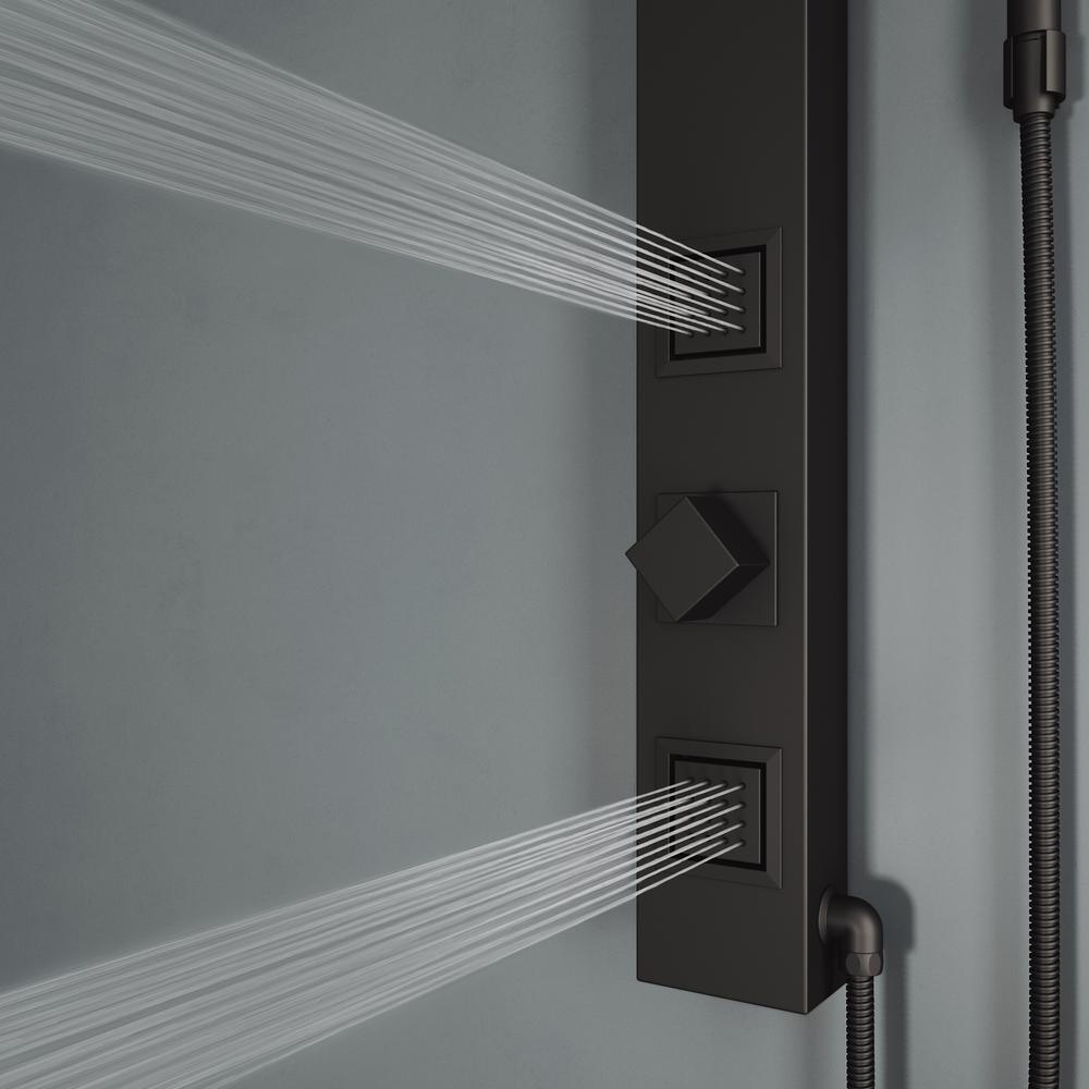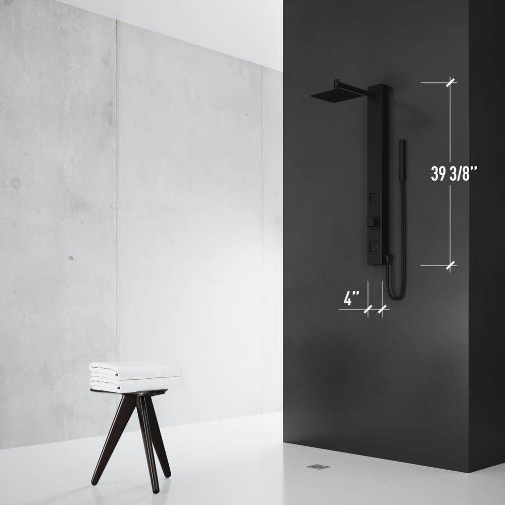 Easily the best decision you'll make for your bathroom all year, the VIGO Orchid Retro-Fit Shower Panel is simple perfection. With a clean square rain showerhead, a single knob to divert water and a separate extendable hand shower, individual elements are combined into one strategic unit to provide the ideal in health and wellness. The Orchid intelligently incorporates hydrotherapy through two integrated body jet massage sprayers, relieving tension through pressurized water power. With the VIGO Orchid, continue to use your existing shower control handles for on/off controls and temperature adjustments while seamlessly incorporating the VIGO Orchid into your setup. The panel itself is made from a lightweight yet durable stainless steel material and is coated in 7-layers of premium matte black finish to resist rust, corrosion and tarnish. With easy connections to existing shower heads, the VIGO Orchid is versatile and easy to incorporate into your existing setup. Enjoy rejuvenated health with the VIGO Orchid.