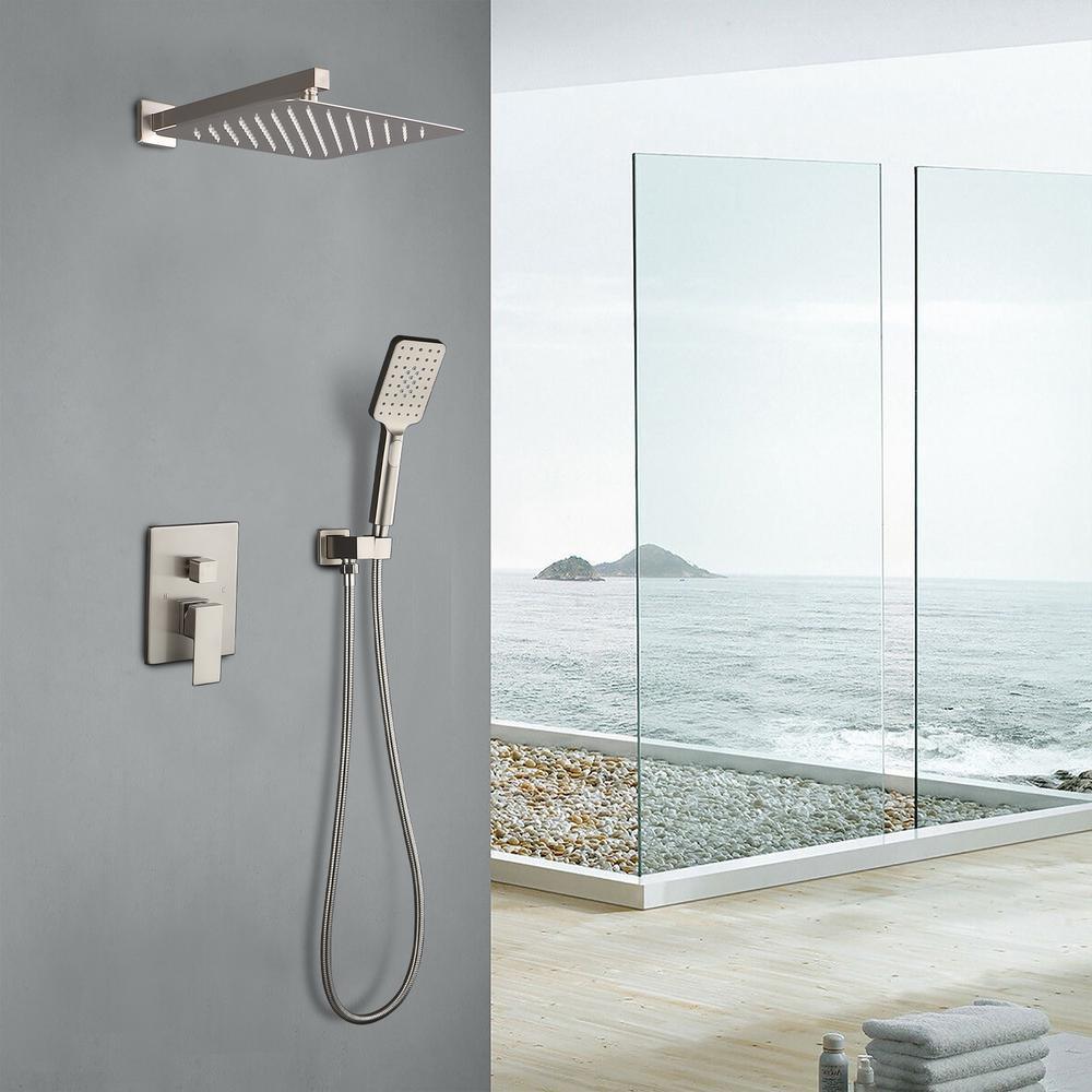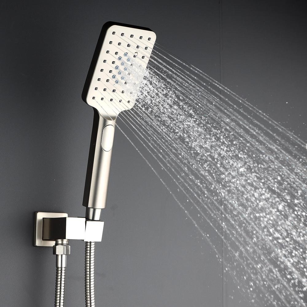• What You Get -- All parts of the rain shower set are made of high-quality materials with professional technology. Those parts include 10-inch square rainfall shower head, handheld shower head, 15-inch shower arm, shower holder, pre-embedded valve, and 60-inch shower hose. The matte black finish and brass combination offers anti- corrosion and classical looking.