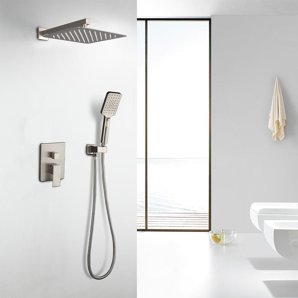 • Remarkably Unique Design -- The shower faucets set has two modes for bathing: handheld shower head and rainfall showerhead which could easily switch thanks the shower knob on the valve. The lever handle could easily adjust the hot/cold water.