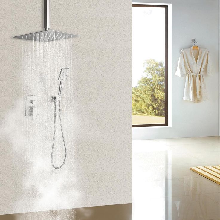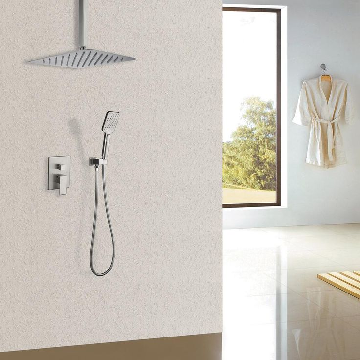 • Shower faucets complete set includes: 10 in. square rainfall shower head, handheld shower wand, 11.8 in. ceiling mount shower arm, anti-scald valve, 60 in. shower hose and shower bracket holder
