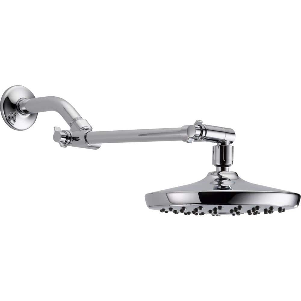 Delta 1-Spray 7.5 in. Single Wall-Mount Fixed Rain Shower Head with Adjustable Arm, Chrome