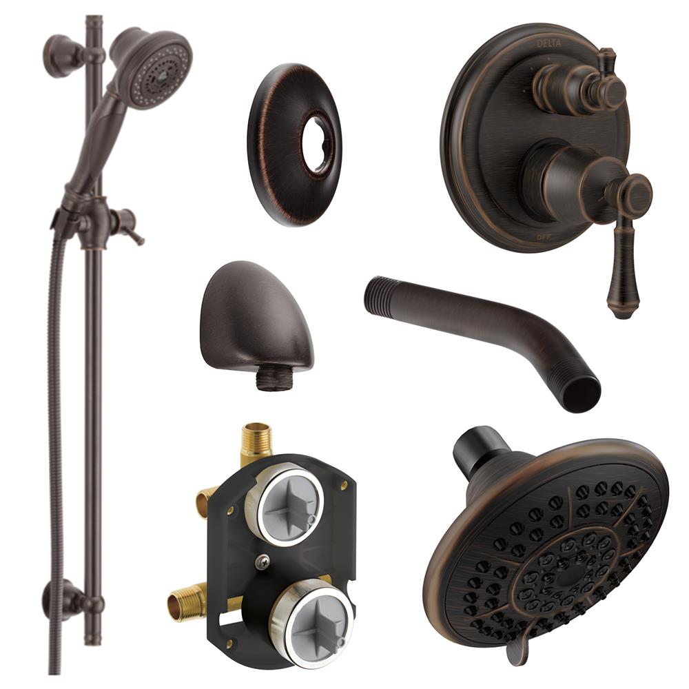 DELTA Linden Venetian Bronze Shower Bar System with 3-Way Diverter, 4.94-in Showerhead (Pressure-Balanced Valve Included)