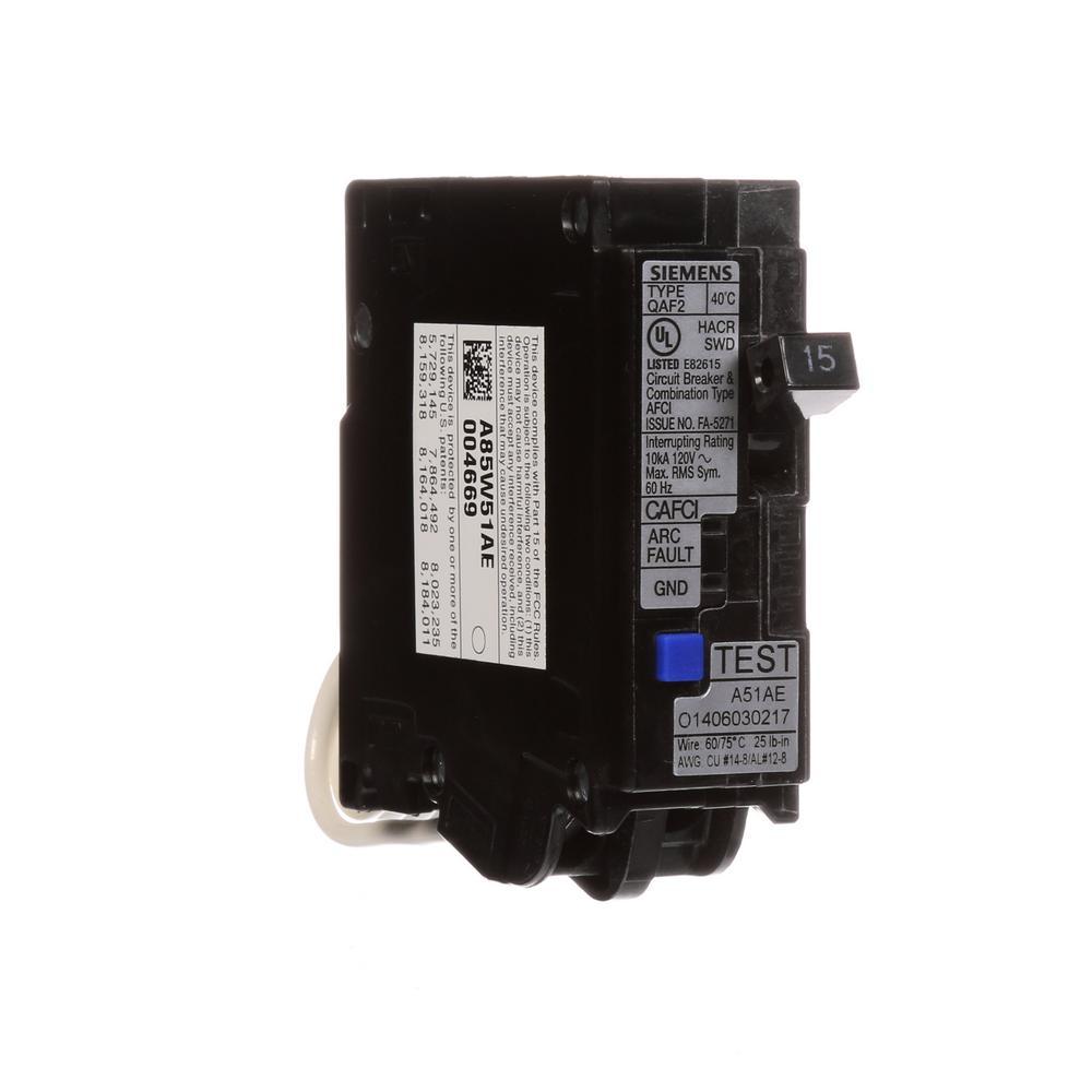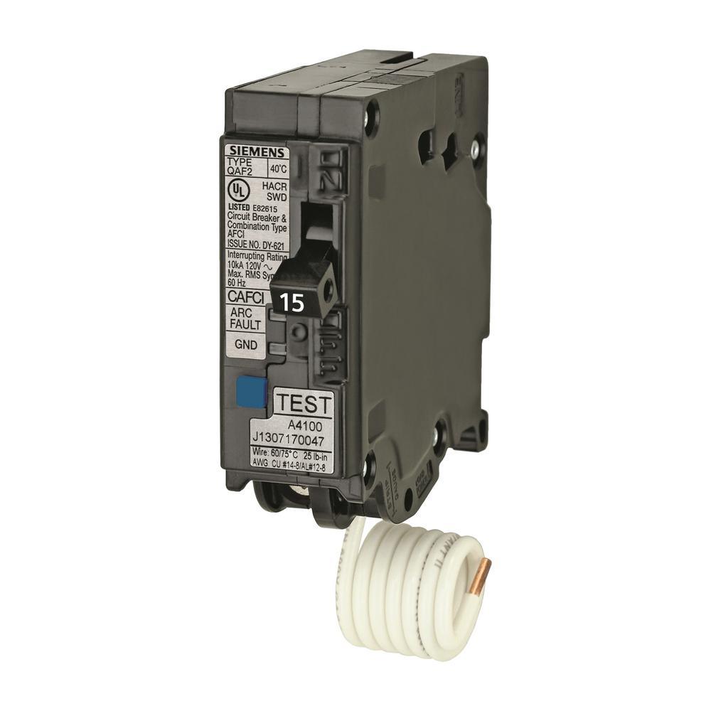 This Siemens 15 Amp 1 in. Single Pole Combination AFCI Circuit Breaker trips to the center position and features LED trip indicators. This combination breaker is intended for use as a circuit breaker and AFCI device. This breaker is UL listed.