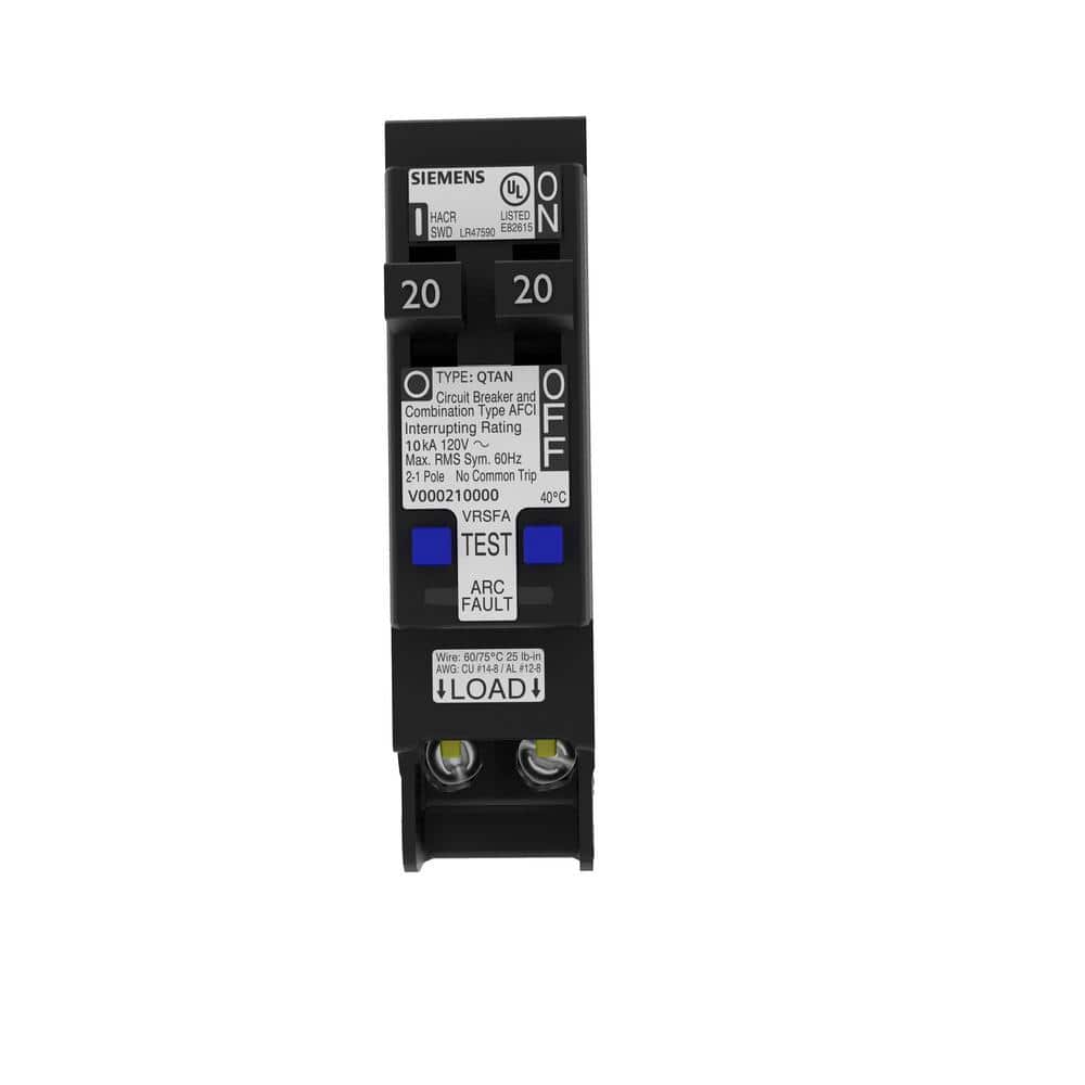 Siemens 20 Amp 120-Volt 1-Pole Tandem CAFCI Type QTAN Circuit Breaker