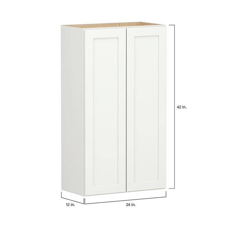 Shaker Full Overlay 24 in. W x 12 in. D x 42 in. H Plywood Assembled Wall Kitchen Cabinet in Linen White