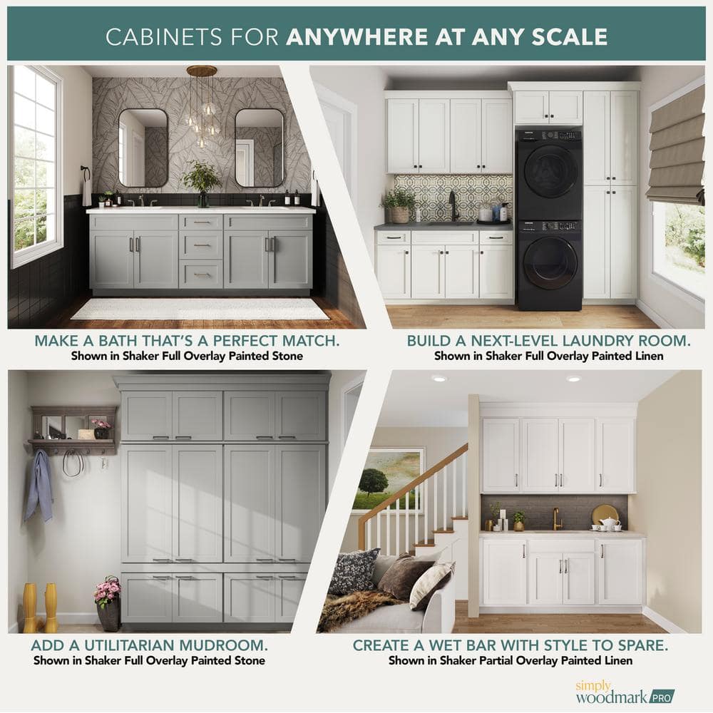 Elevate your kitchen with the SIMPLY WOODMARK PRO Shaker Wall Cabinet, featuring a sturdy all-plywood construction and a stylish Linen White finish. This cabinet combines modern elegance with timeless design, offering ample storage with its three adjustable shelves.