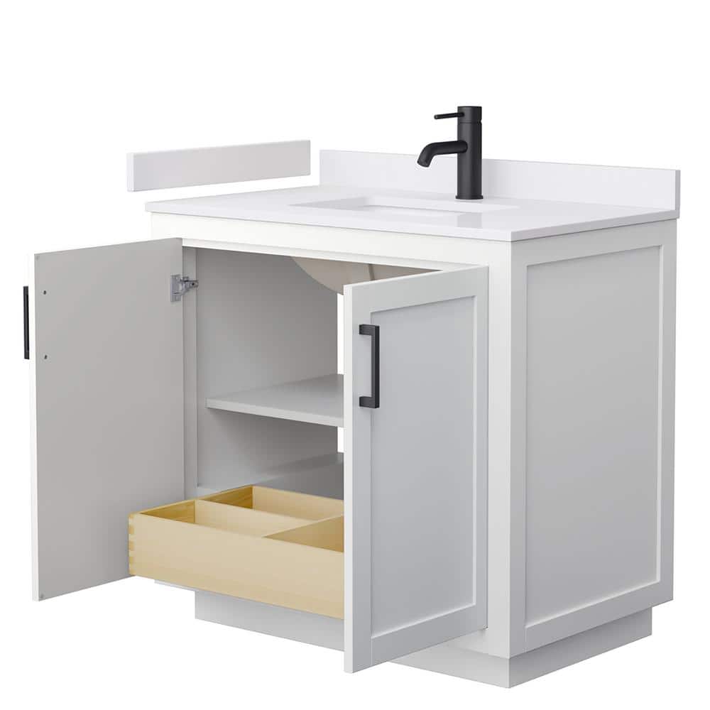 The Miranda 36" Single Sink Bath Vanity by Wyndham Collection combines modern design with practical functionality. Featuring a white cultured marble top and ample storage, this vanity is perfect for any contemporary bathroom.
