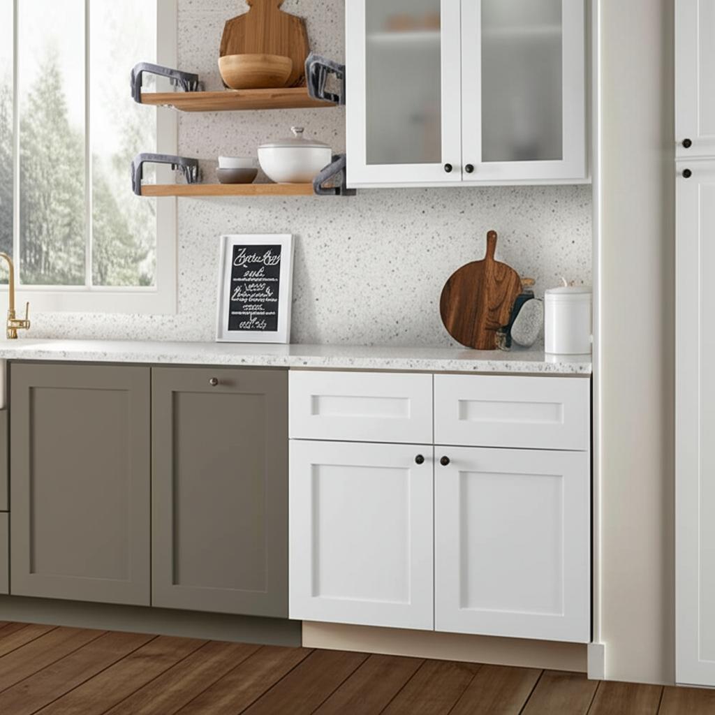 - Elegant Design: Features shaker-style doors with 3-inch wide frames and flat recessed center panels.