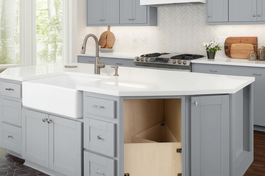 Upgrade your kitchen today with the Hampton Bay Shaker Dove Gray Corner Sink Base Cabinet and experience the perfect blend of style and functionality.
