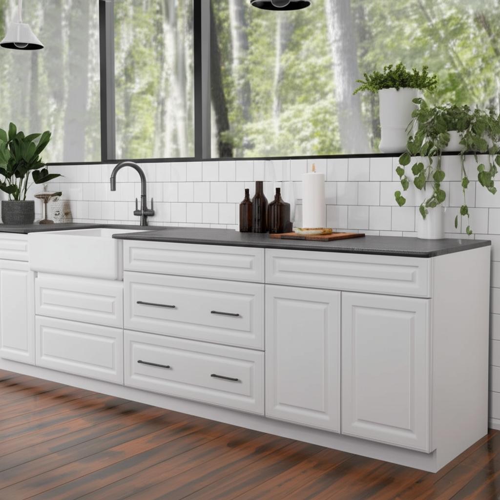 Transform your kitchen into a haven of sophistication with the Elgin Sink Base Cabinet. Its textured white wood-grain finish and frameless design create a seamless, modern look that complements any decor. Pair it with sleek countertops and stainless steel appliances for a chic, contemporary vibe. This cabinet is not just a storage solution; it's a statement piece that embodies luxury and functionality.