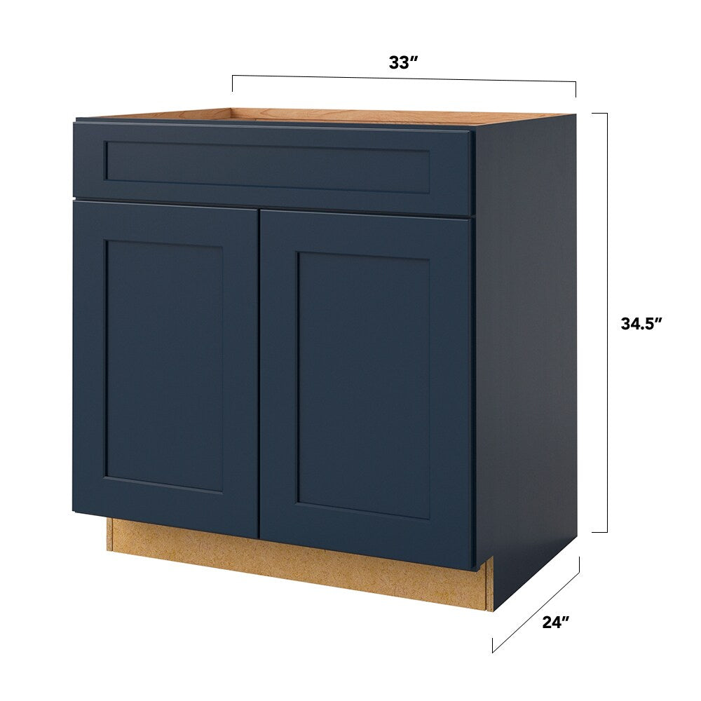 allen + roth Port 33-in W x 34.5-in H x 24-in D Navy Sink Base Fully Assembled Cabinet (Flat Panel Shaker Style)