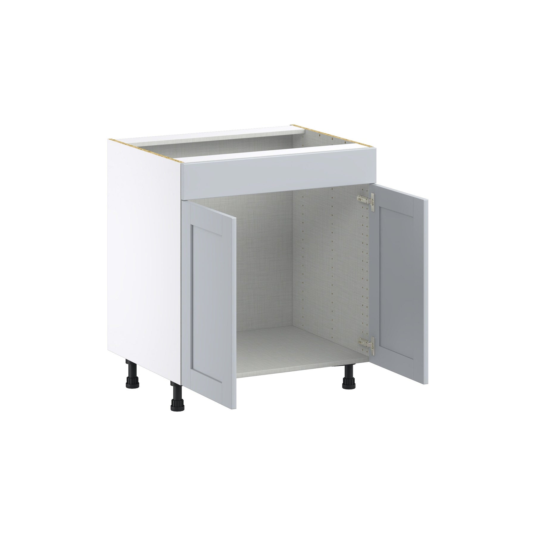 Experience effortless sophistication with the Hugo&Borg Charlesberg 30" Gray Sink Base Cabinet. This fully assembled, shaker-style masterpiece provides 20% more storage capacity, thanks to its innovative full-access box construction. Its sleek matte laminate finish seamlessly combines elegance with resilience, making it perfect for modern kitchen spaces.