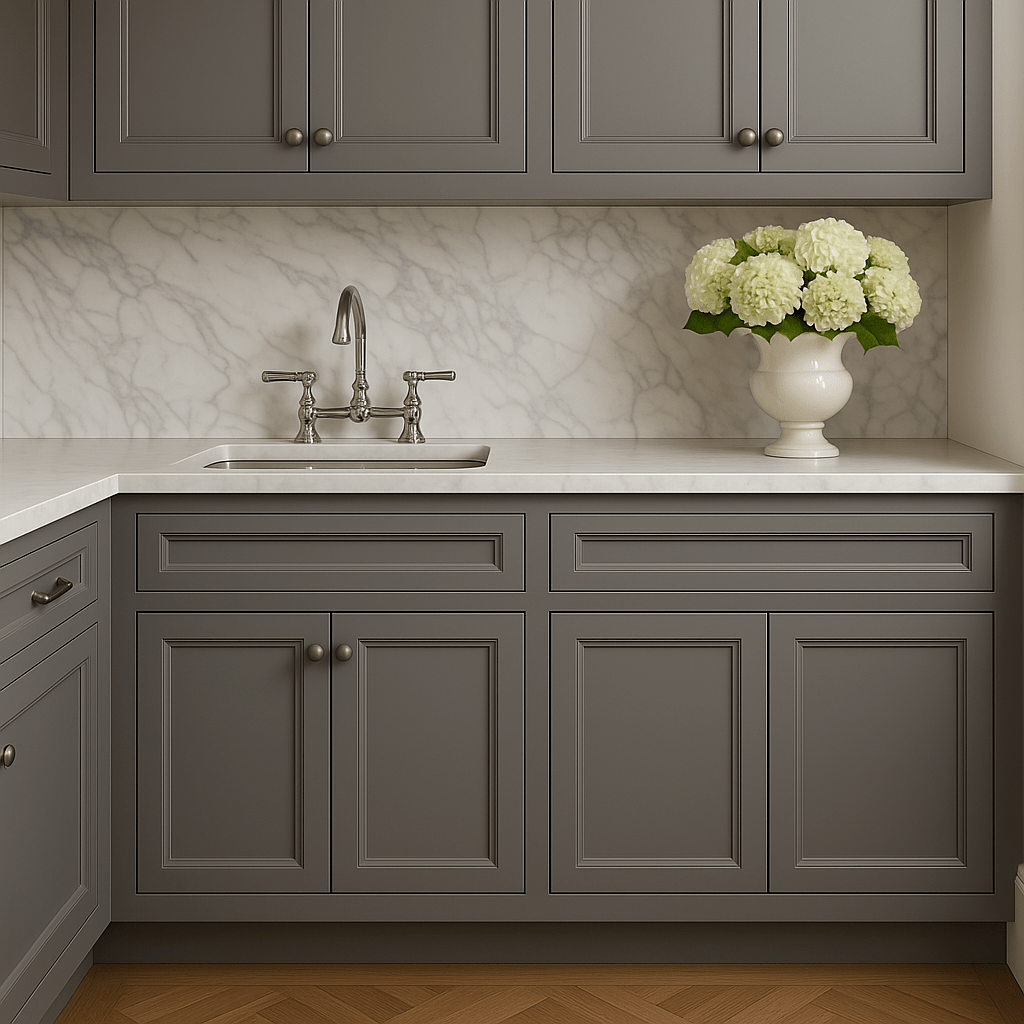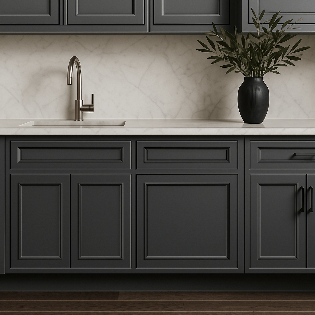 Upgrade your kitchen with the stylish and durable Keyport Shaker Charcoal Sink Base Cabinet today!
