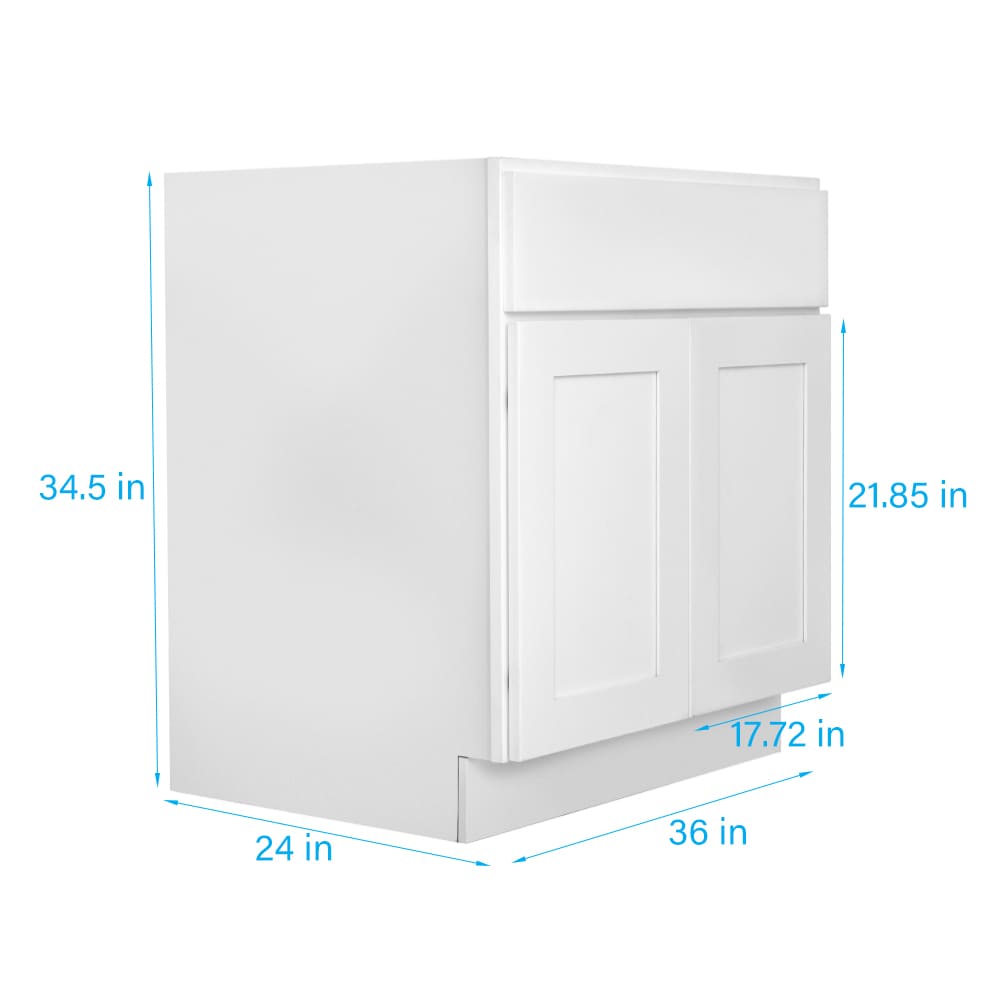 36-in White Shaker Sink Base Kitchen Cabinet, Ready to Assemble