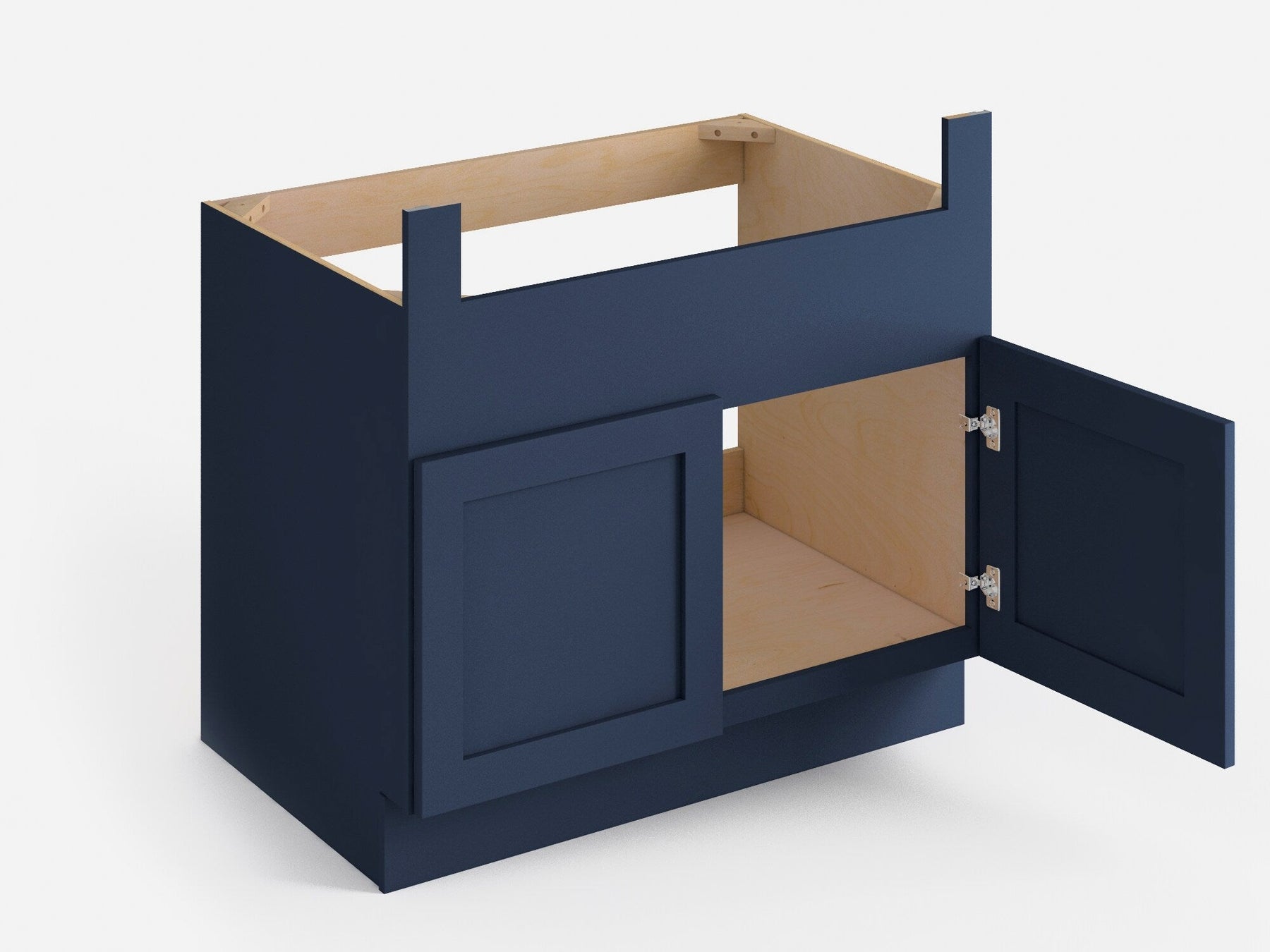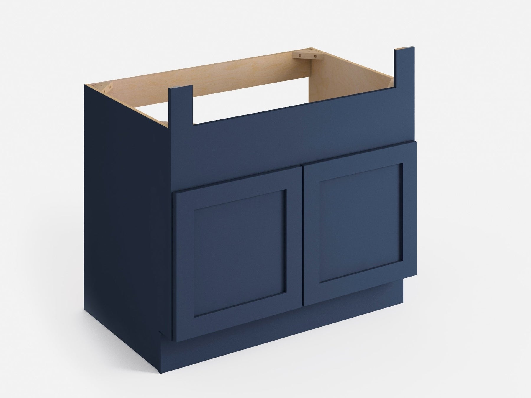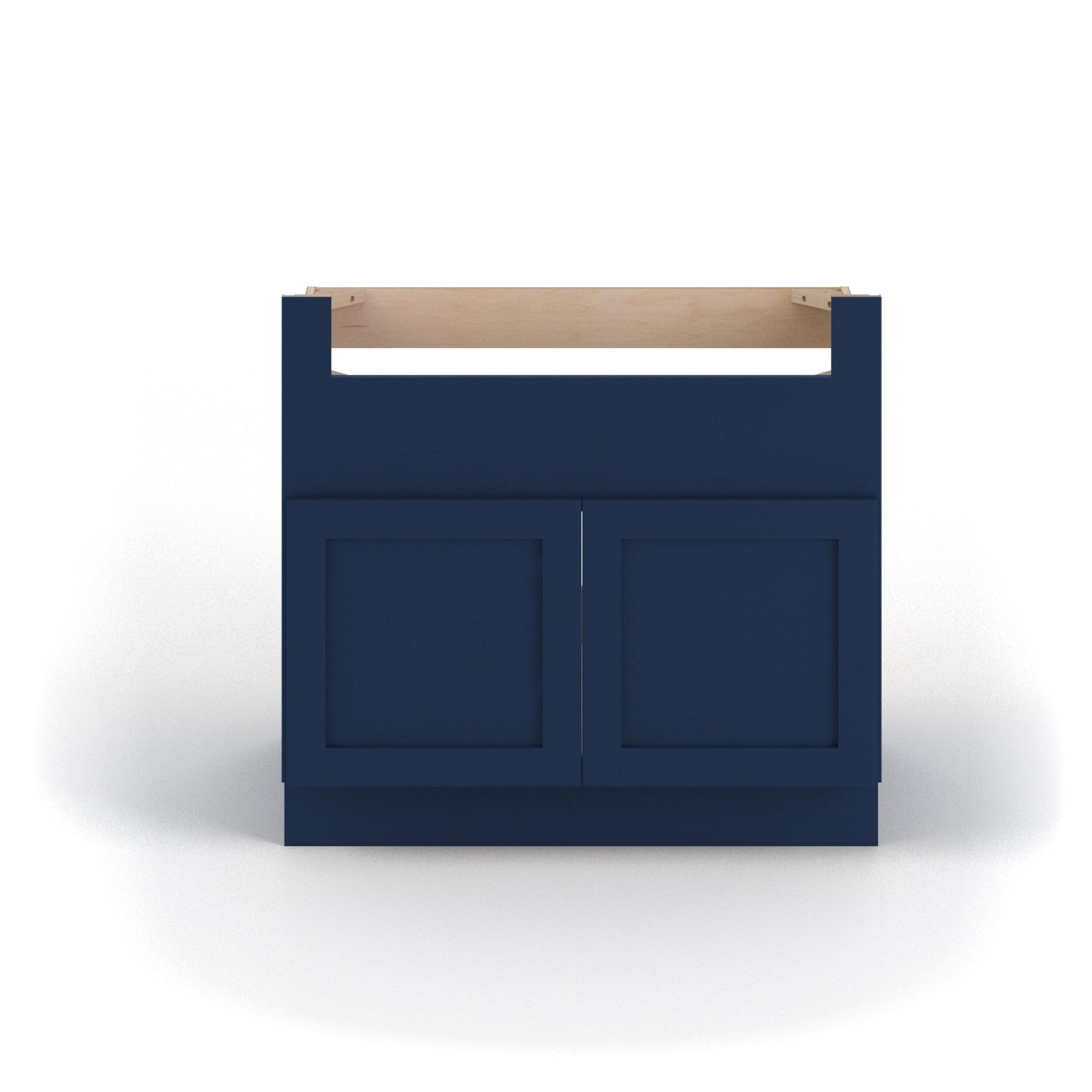 Valleywood Cabinetry 36-in W x 34.5-in H x 24-in D Marine Blue Birch Apron Front Sink Base Ready To Assemble Plywood Cabinet (Flat Panel Shaker Style)