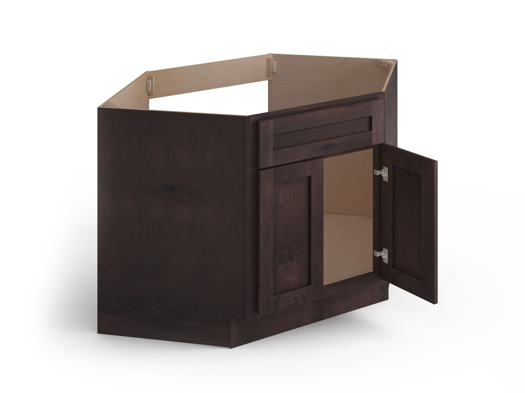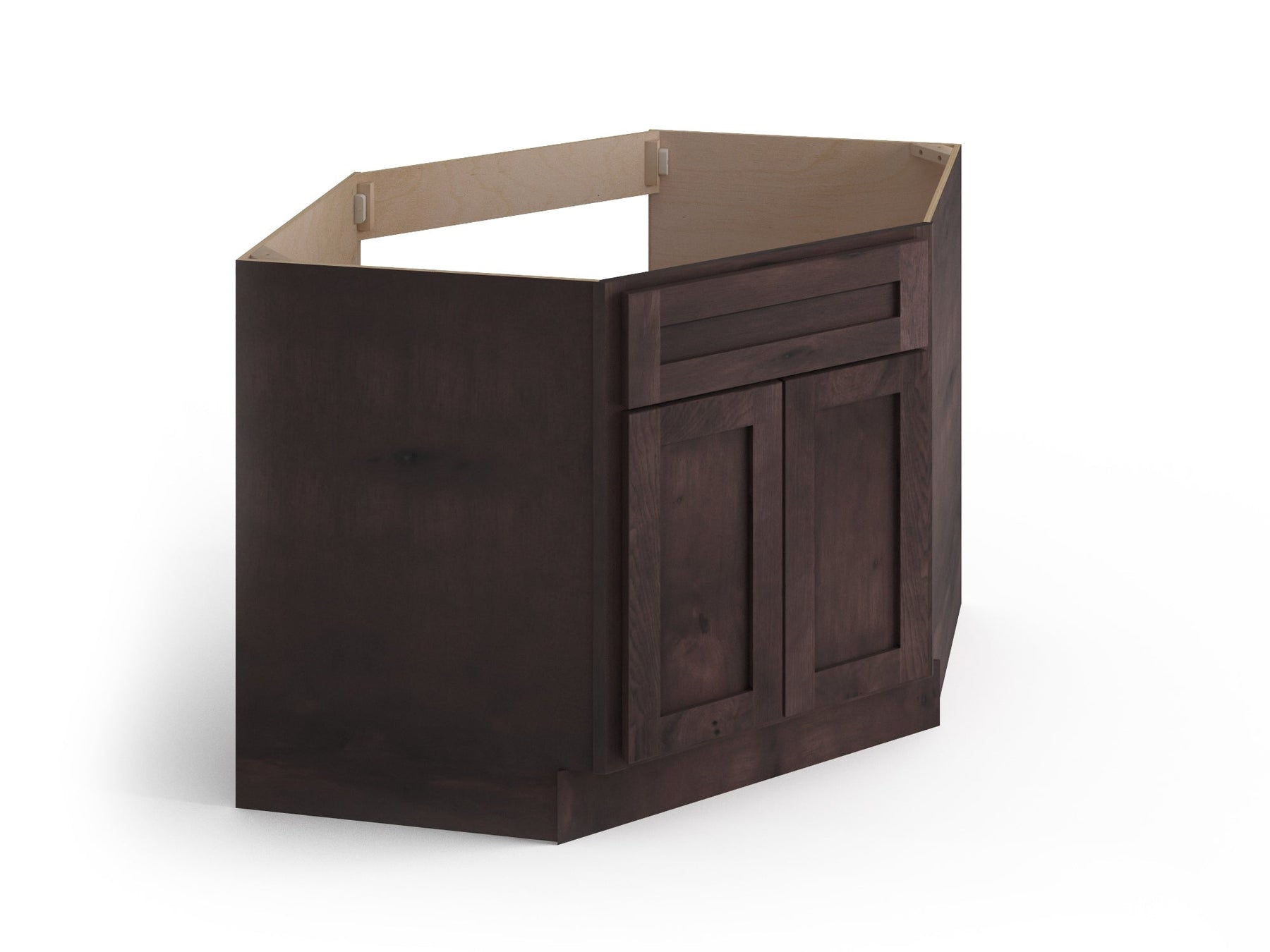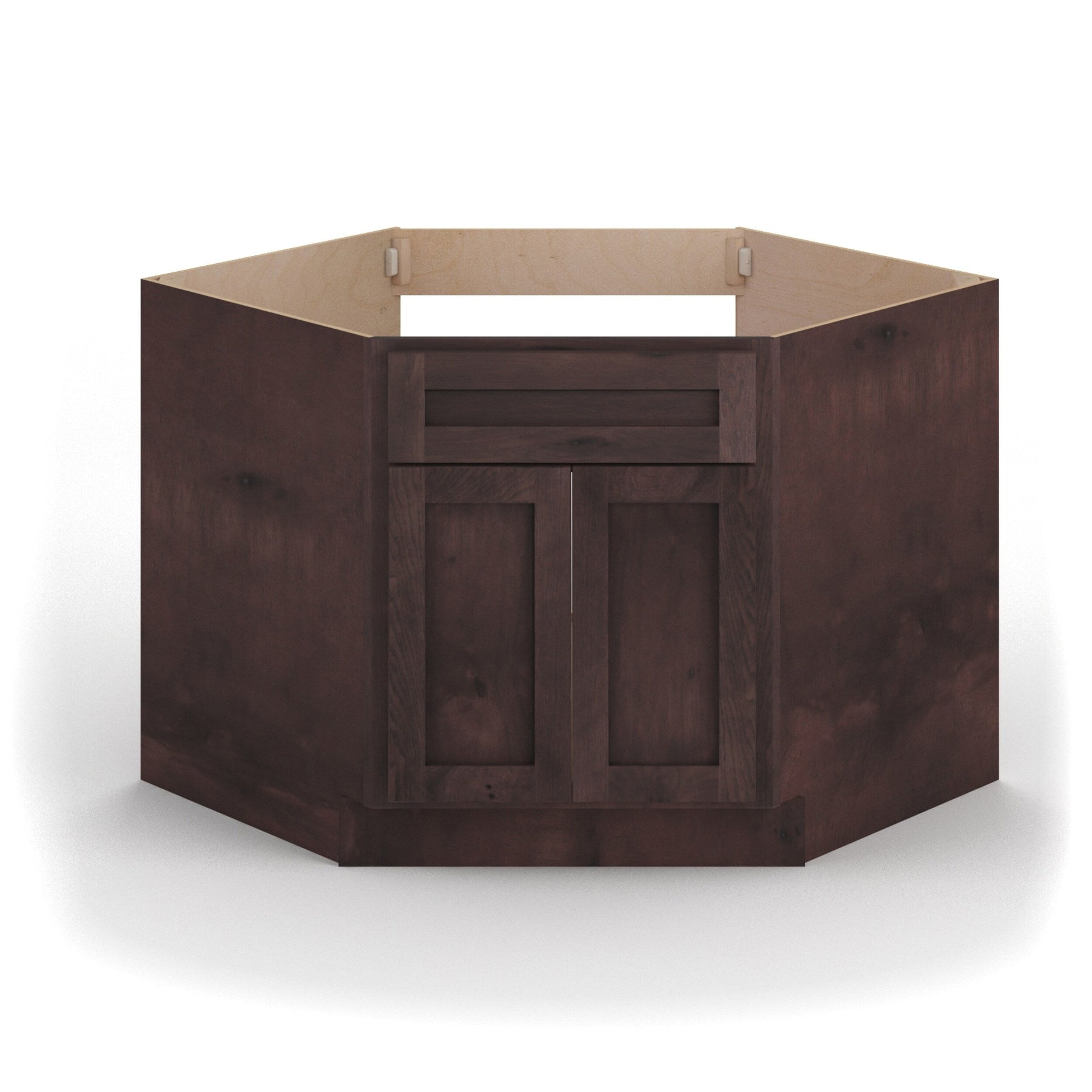 Valleywood Cabinetry 42-in W x 34.5-in H x 24-in D Rustic Hickory Diagonal Sink Base Ready To Assemble Plywood Cabinet (Flat Panel Shaker Style)