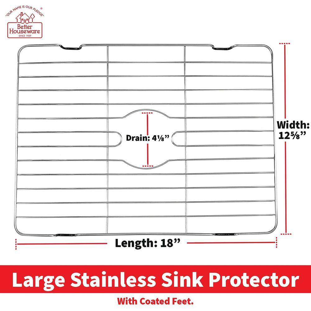 Ensure your sink remains spotless with the Better Houseware Large Stainless Steel Sink Protector. Designed to prevent scratches and safeguard your sink while keeping dishes and delicate glassware safe from breakage, this grid offers ultimate durability and convenience for your kitchen.
